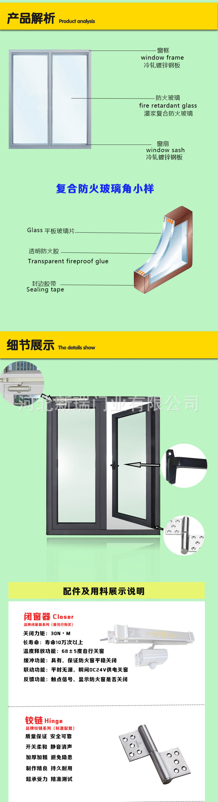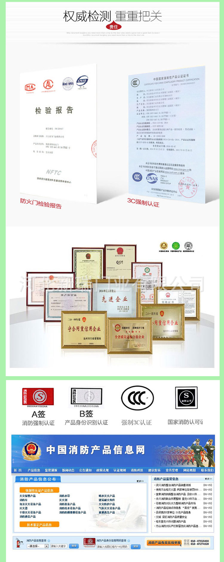 留意:2008年新的防火窗标准健全了可移动防火窗的测试标准。可在启闭装置处找到活动防火窗消防产品信息网的供应,以查问制造商的测试报告和制造商的称呼。