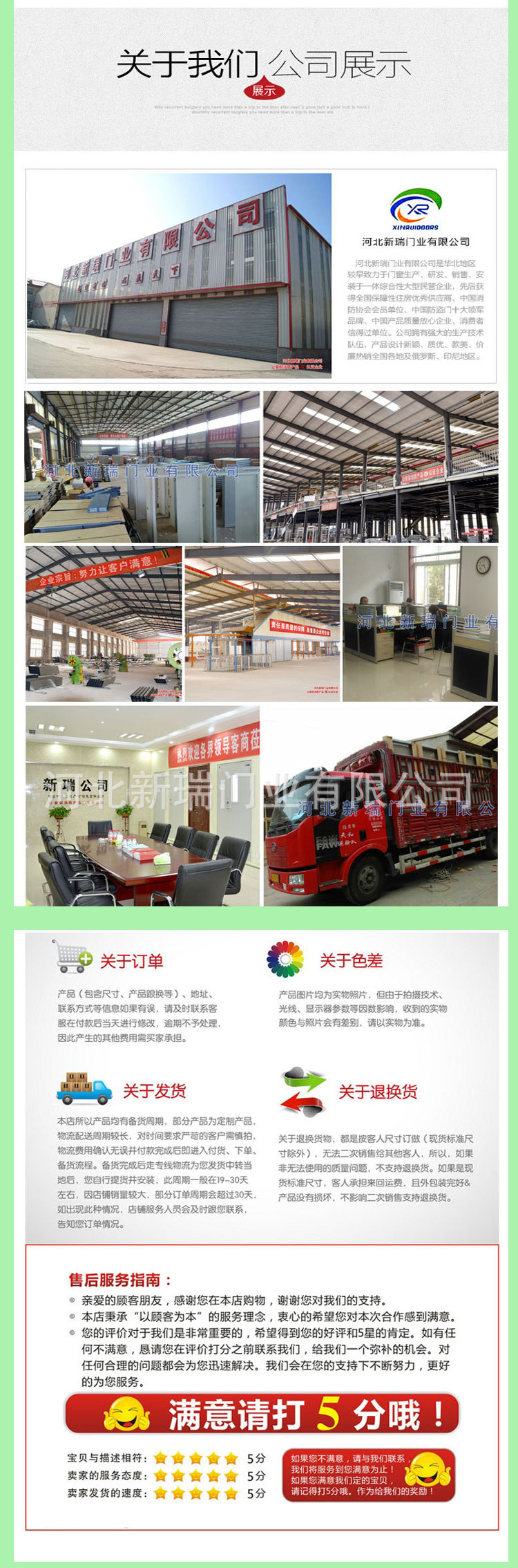 产品详情:河北新瑞门业有限公司是一家专业生产和加工防火门,防火卷帘门,防火窗,a类防火入口门等的公司。它具完整而科学的质量管理体系。河北新瑞门业有限公司被业界承认诚信,实力和产品质量。欢迎各界朋友光临,指导和洽商业务。
