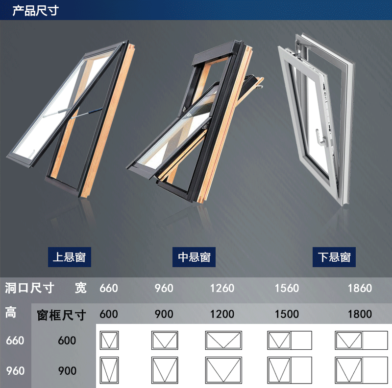 - 型号上悬窗、下悬窗、中悬窗、内开内倒窗