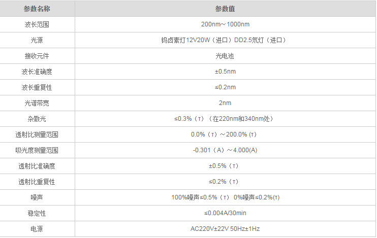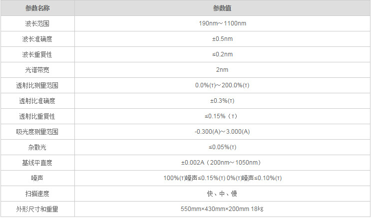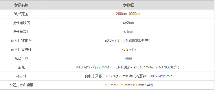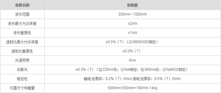 UV755B紫外可见分光光度计参数: