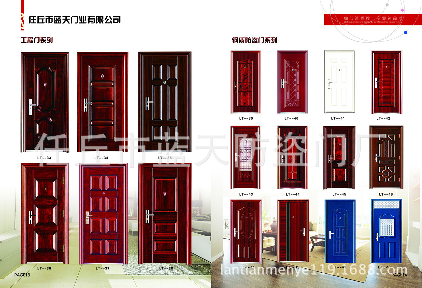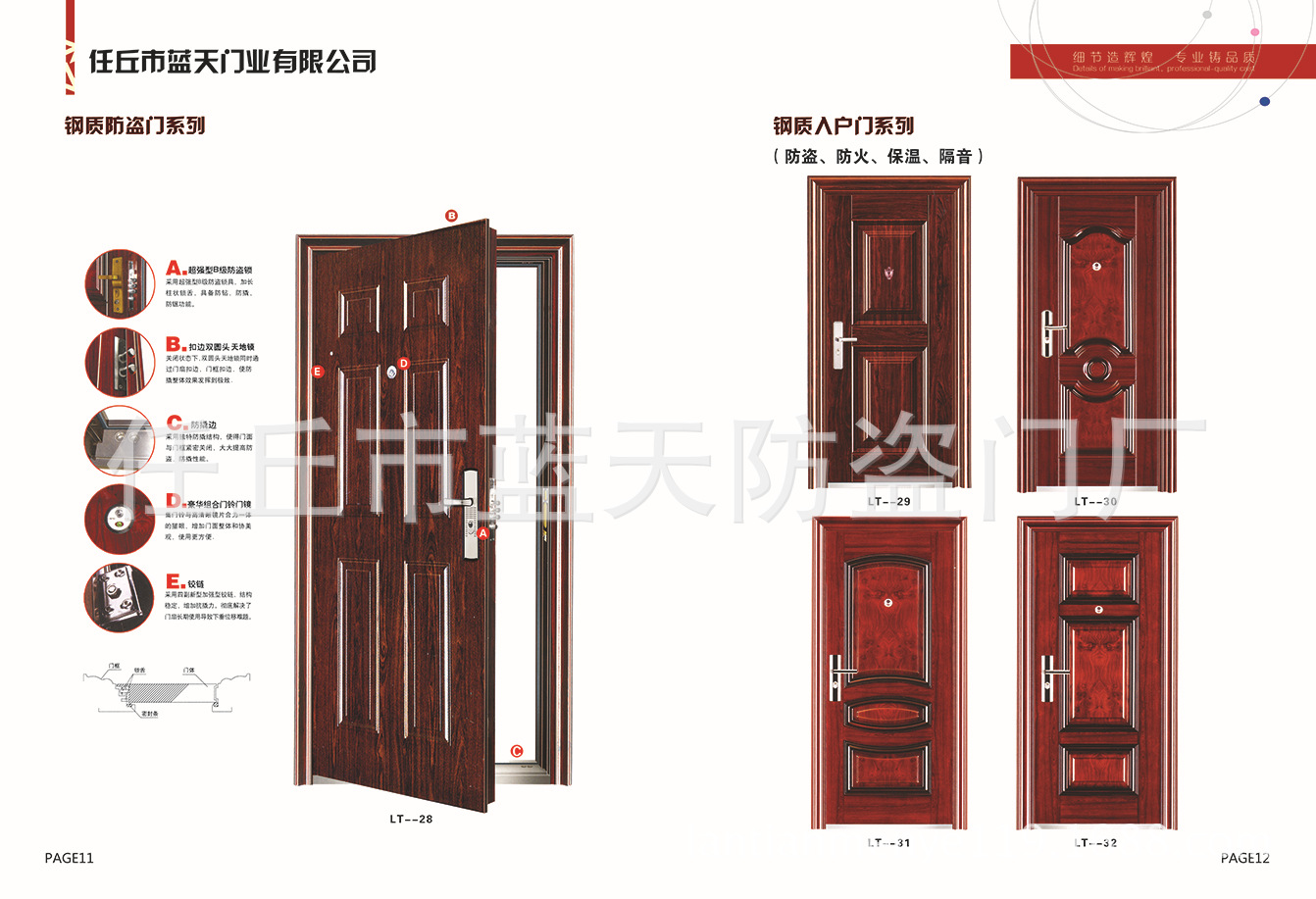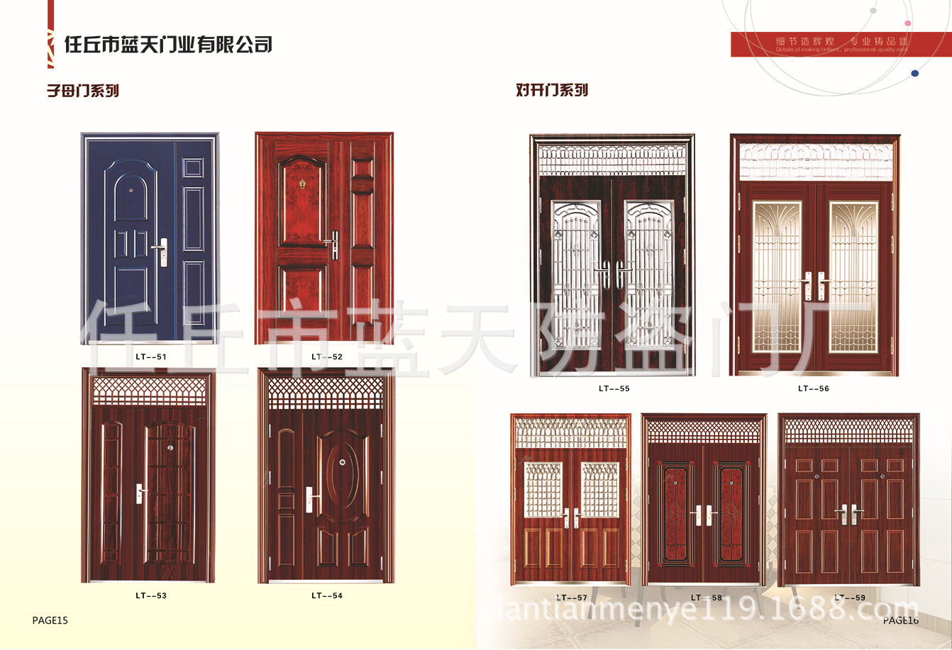 产品详情:蓝天门业是一家专业生产钢质防火门,木质防火门,防火窗,防盗门,防火卷帘门,不锈钢工艺门,车库门,地下室门,管井门的企业。专业的生产装置和生产线,丰厚的技术力量和先进的管理经验。机架使用三维设计,具备抗冲击,抗老化,耐腐蚀,不生锈的优点。经典风格与现代技术的完美结合反映了门的造型技术和实用价值。它在当前门市场上具备奇特的风范和超凡脱俗的工艺,内部专业的工艺设计合理,为您量身定制精细制造,以满足特别场合的艺术和功用需要。
