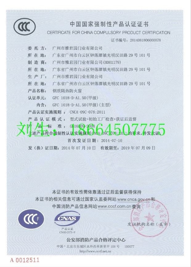 (1)窗框使用一定强度的钢框架或木框架,以保证组件的完整性和稳定性。(2)镀锌钢板或不锈钢板可用以钢框架和压条。材料选择标准化相符gb12955“钢质防火门通用技术要求”第5.1条的规定。(3)木框和层板的材料选择标准化应合乎gb14101“木质防火门通用技术要求”的规定“在第5.1.1。(4)条中,应使用不燃材料填充钢和木框架内的材料。(5)防火玻璃可以选择不影响防火窗耐火性能测试的产品。不少于相同层数的一般而言平板玻璃的75%。(6)框架与耐火玻璃之间的密封材料应使用不燃材料制成,以起到防火和防潮的效用。(7)硬件配件应为已通过测试的最后匹配产品。