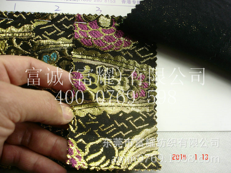 中国风金线色织提花布 针织布底复合系列服装沙发布窗帘提花布