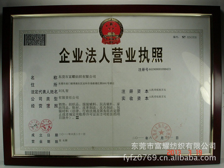 公司名称:东莞市富耀纺织有限公司