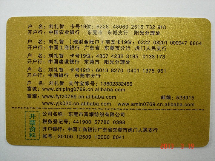开户银行:中国工商银行广东省东莞市虎门人民支行银行号码:102602002214