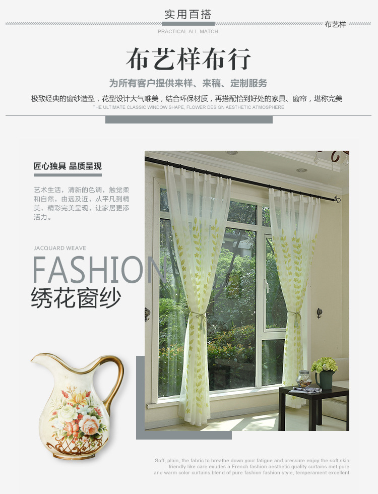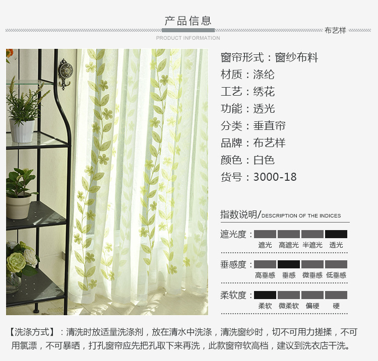 - 颜色草绿色绣花纱
