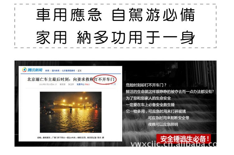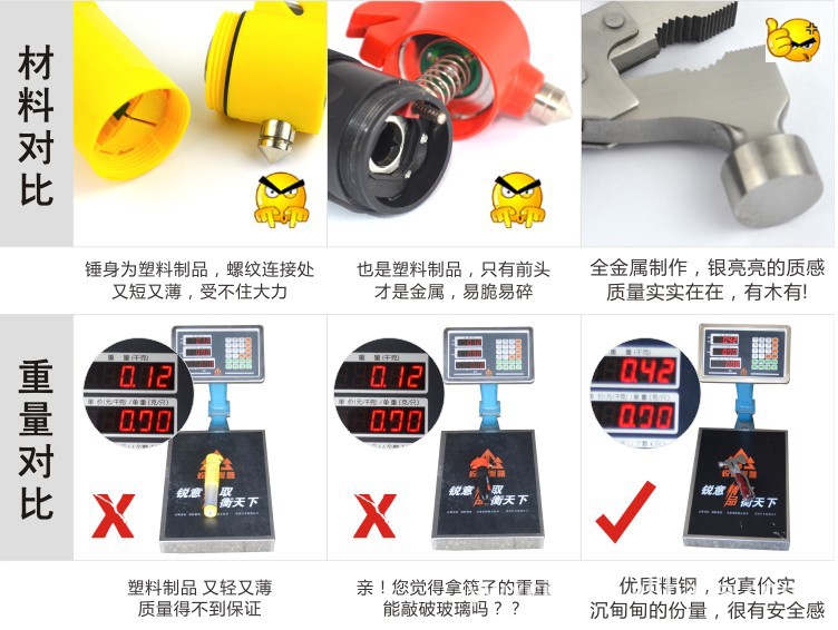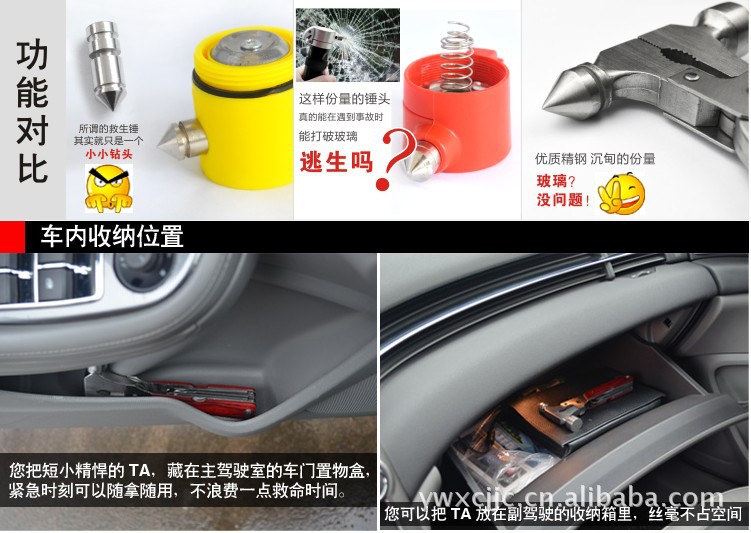 一个价值十,这是一种十分实惠且增值的驾驶必备产品!万一时有发生意外,当您无法开启门窗时,可以用锤子打碎玻璃以脱逃。