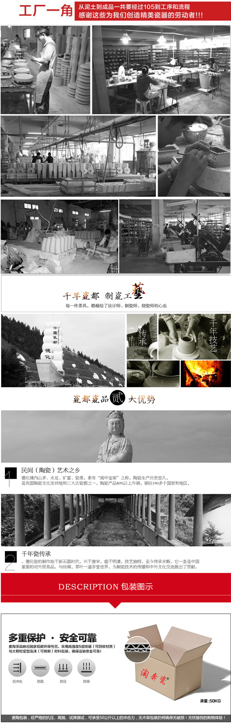 德化御轩研究所坐落德瓦,德洛是中国的三个古代瓷都之一。我厂是集礼品瓷,工艺瓷,工艺瓷,日用瓷的生产,设计,销售为一体的综合性企业。我们持有专业英才,充裕的技术力量,严苛的质量管理体系和健全的工艺装置。在生产中选取了各种优质材质,通过现代技术开展了开发,并在1380度的高温下开展了烧成。产品质量有保证!茶具是精巧,纯净的瓷器,洁净忙于,釉面纯净湿润,总体质地湿润如油腻。手持@放在桌上并赠给的具有明如玉特点的高端玉器瓷器美丽而高贵。象征性的。美丽的纯白色味道,可以花更多时间闲谈和品尝茶。看全套的杯子是一种品味和精神上享受。茶盘使用高档原木制成,具有外观与众不同,外形美观,简便结实的特色!本厂秉承“诚信,用户至上”的经营理念,并保证售后保证。欢迎客户购置加印公司logo或定制样品!