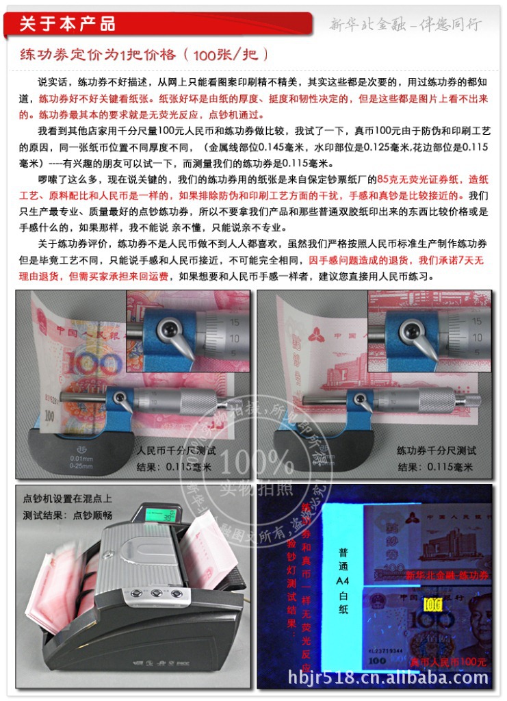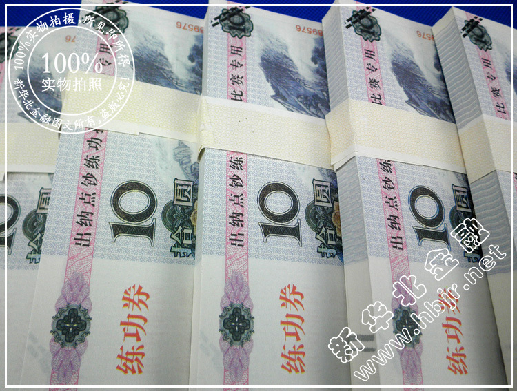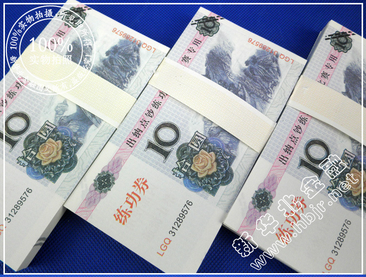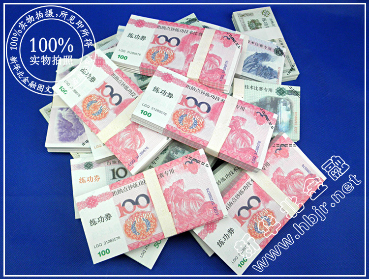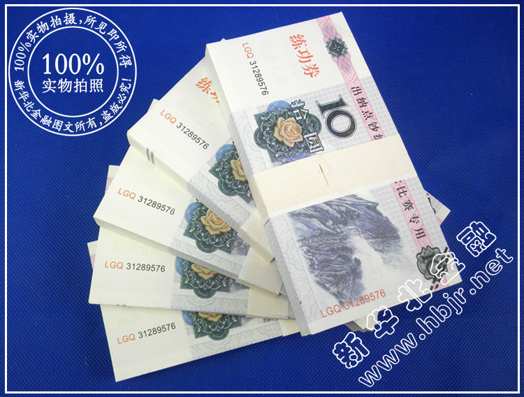 [产品说明]:它是由特别的钞票纸制成,并按照现行的人民币基准流通印刷,图案精致,无荧光反应,手感与真正钞票相同。