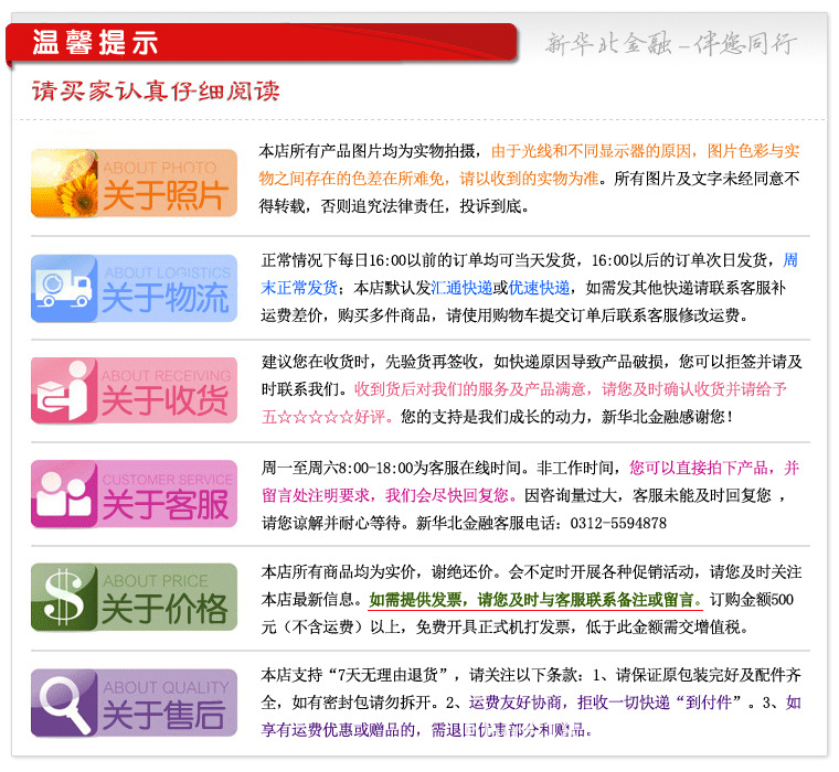 到货,如偏远城市需转移到货,一般送到最邻近购买者的取货点,运费一律付。情谊提醒:提货时
