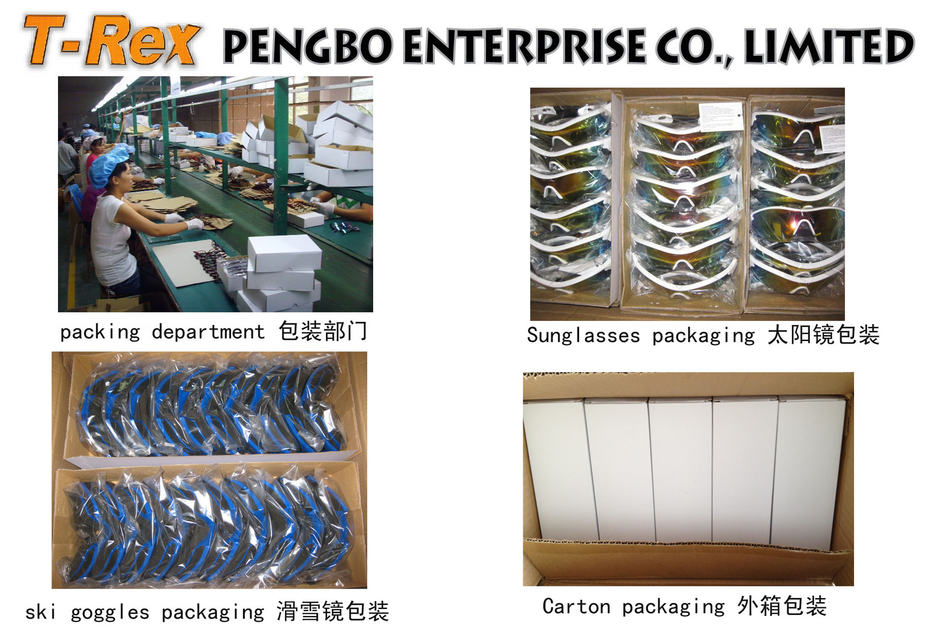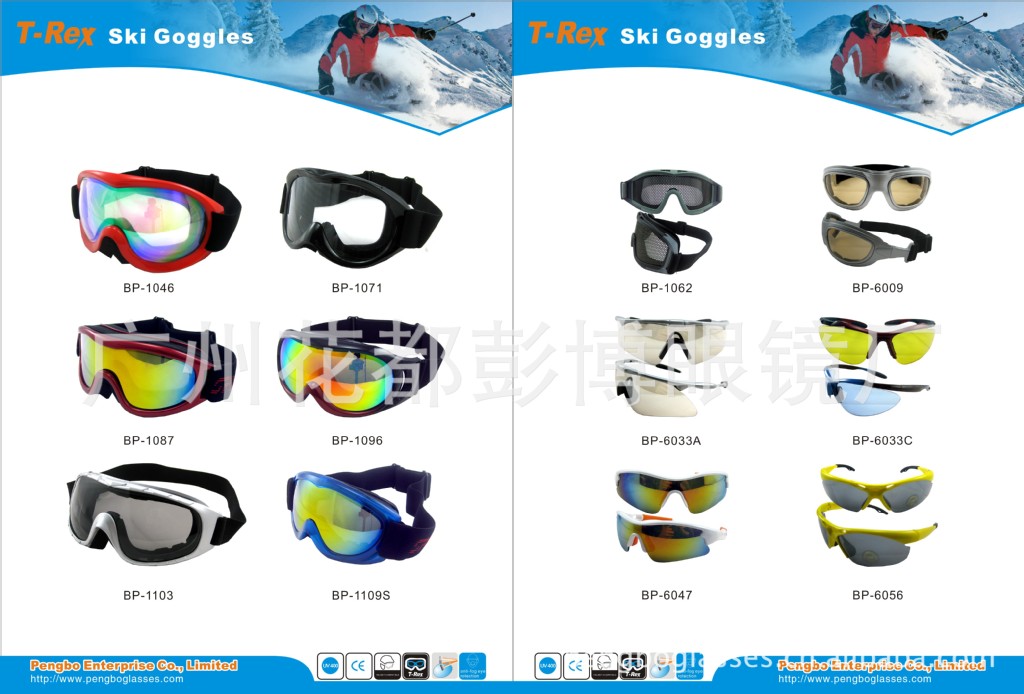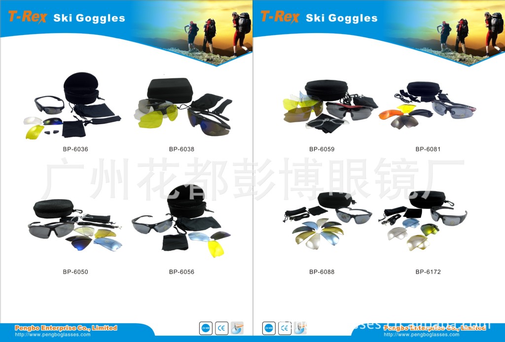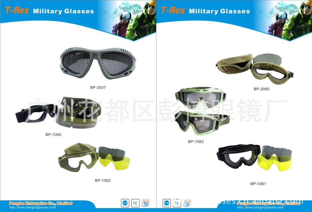 广州彭博眼镜厂专注于眼镜的生产,主要生产各种成人和幼儿塑料太阳镜,安全眼镜,诊疗安全眼镜,工业安全眼镜,运动眼镜,摩托车眼镜,滑雪眼镜,游泳镜,激光眼镜,户外自行车运动眼镜,骑行眼镜,偏振光镜片,电焊眼镜,老花镜,蓝球眼镜,马术眼镜,防辐射眼镜,水上运动眼镜等……各种眼镜和护目镜。产品式样多样,质量准确,价钱合理,交货按时,可根据不同客户的要求和等级生产;请访问我们的网站www.pengboglasses.com。我们工厂具有充沛的生产OEM经验,其产品质量已通过CE和FDA开展了测试。公司秉承“声誉第一,质量第一,客户至上”的经营理念。竭诚欢迎国内外新老客户来我公司订购咨询。我们将为您提供一流的售前,售中和售后服务。我们诚恳的期望您来厂参观,并愿意将来成为我们的亲善合作同伴。
