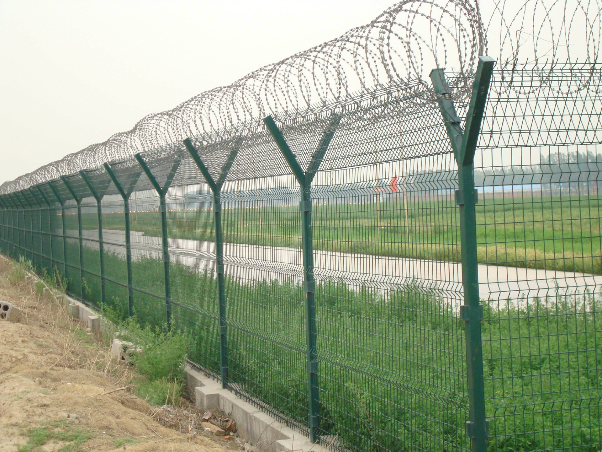 产品详情:护栏网机场也称之为“Y型安全防御护网”。它由一个由焊接片网加固的v形支架柱,一个安全和防盗连接器以及具备高度强度和安全性的热镀锌刀片刺网构成。近年来,它已普遍用以机场和军事基地等高安全性场地。留意:如果将剃须刀丝和剃须刀丝安装在机场护栏网的顶部,则安全防护性能将取得增强。它采用电镀,热浸,喷涂,浸涂等防腐形式。具不错的抗老化,耐日晒和耐腐蚀的特点。其产品外形美观,花色多样,不仅起到围栏的效用,还可以美化。由于其高安全性和不错的抗攀爬能力,网状连接方式采用特别的SBS紧固件来有效性防范人为破坏性拆毁。四个水准弯曲加劲肋可显着提高网格表面的强度。