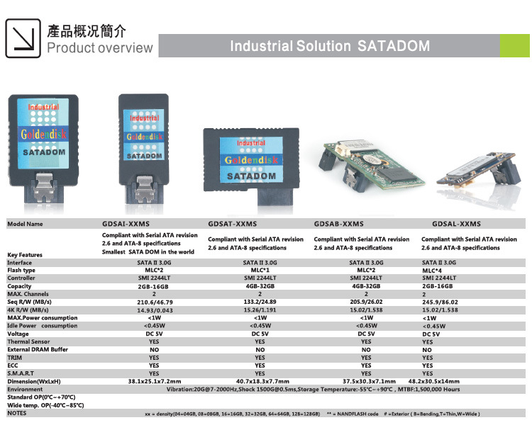 产品详情:SATADOM电子硬盘可以提供三年保修