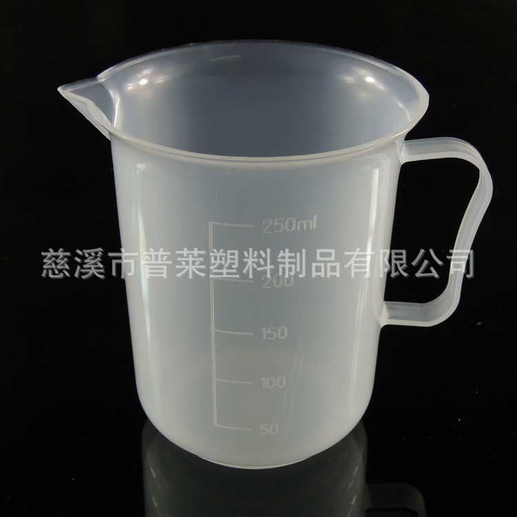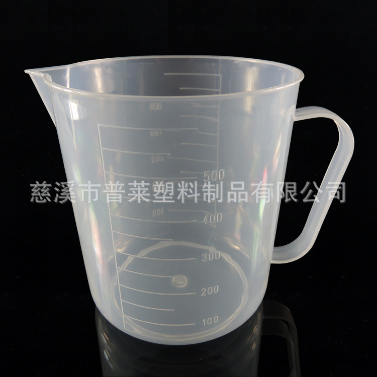 本公司生产各种标准的量杯,普遍用以科学,教育,实验室和诊疗应用,深受客户好评,产品外包装到位,售后服务周到500ml刻度量杯带把手,材质PP,产品上口直径为9.9cm,下口直径为9.4cm,高度为11.3cm,重量为47.3g。该产品耐高温,强酸和强碱。