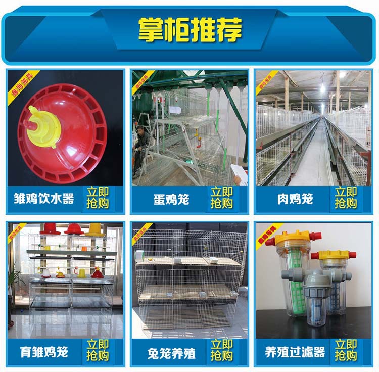 产品详情:藁城市鑫海养殖笼具厂是一家新兴技术企业,专门从事笼子成套设备的研究,制造,销售,养殖场的规划和设计以及施工交钥匙工程一站式服务。该公司承接各种笼子装置的定制加工,如肉鸡笼,蛋鸡笼子和鸽子笼子。整套的肉鸡笼子装置使用优质钢铁,镀锌技术,耐腐蚀和耐用性。笼养鸡成套设备有着自动化程度高,适应性强,操作简易,采用寿命长等特色,可改善养殖环境,扩充养殖环境。劳动强度,欢迎洽商