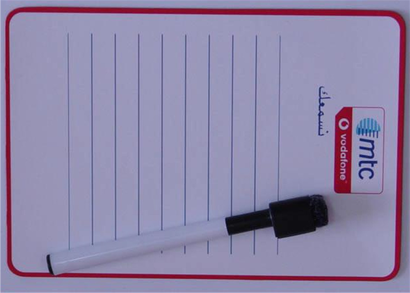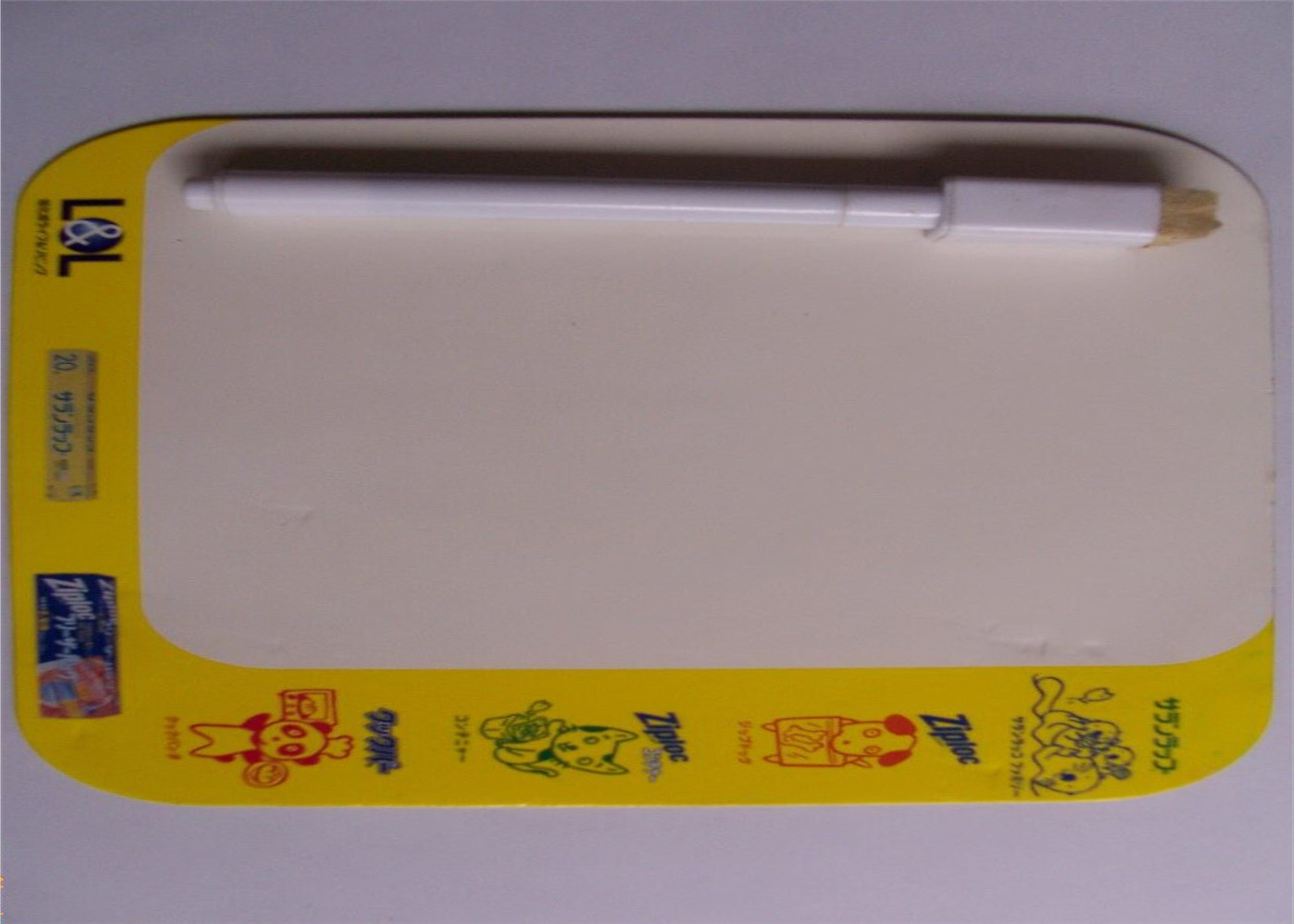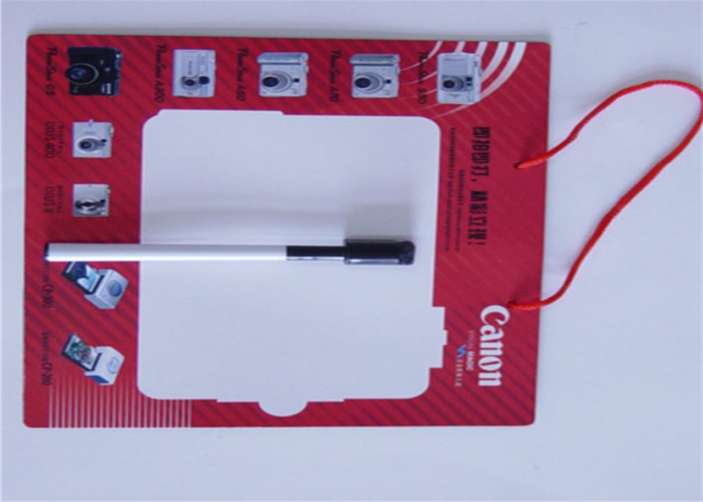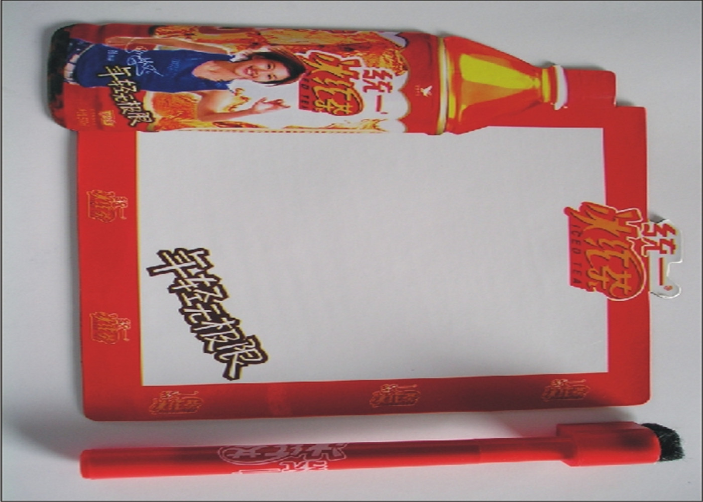 4)磁性留言板白板:软胶磁铁(或硬纸板)+在涂层纸上四色打印裱光膜+可擦笔