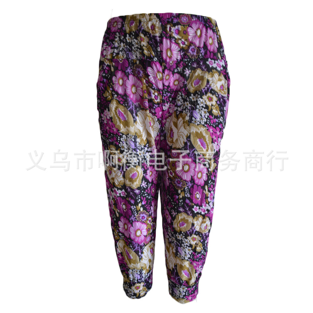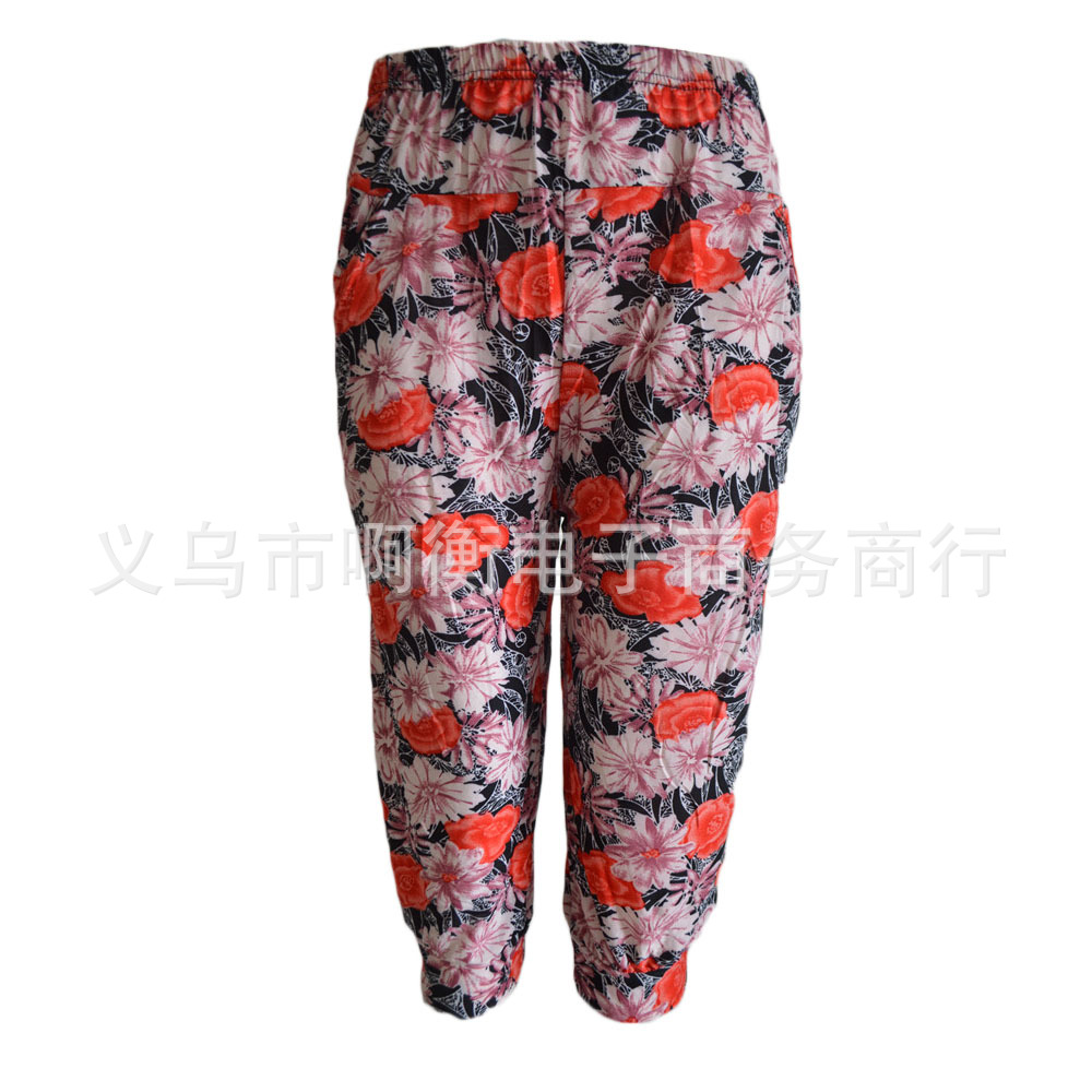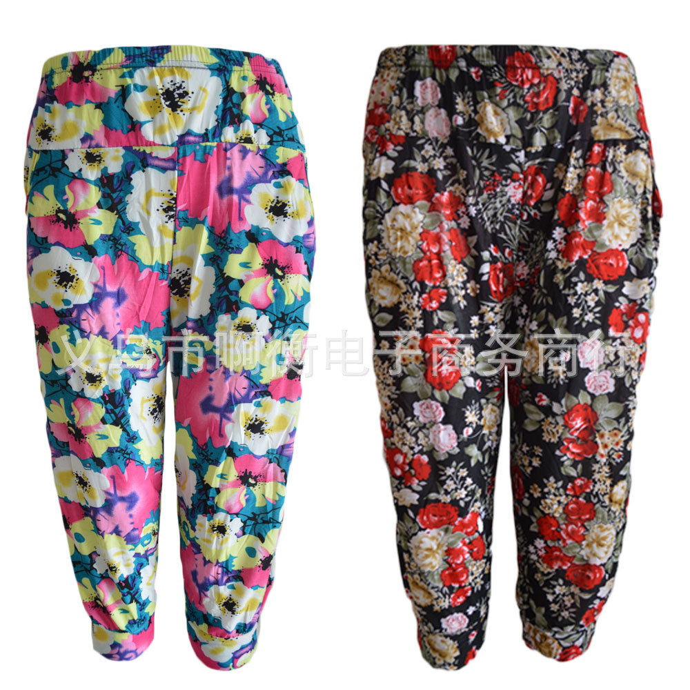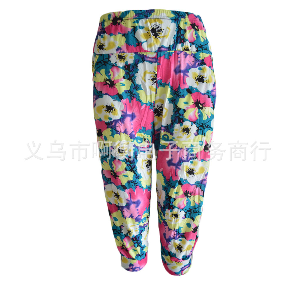 产品详情:厂家直供夏天冰丝彩色印花七彩灯笼裤