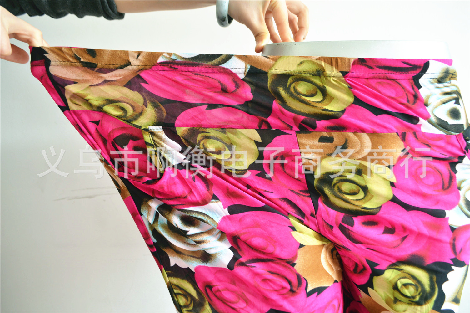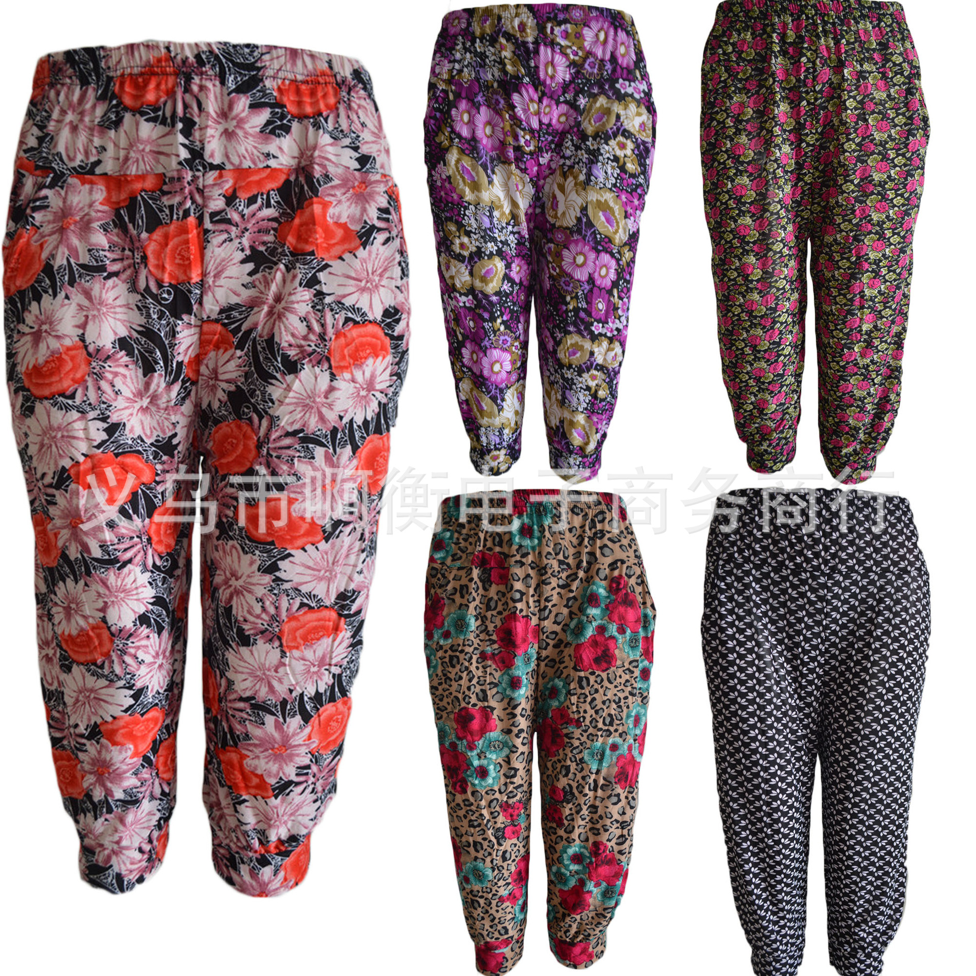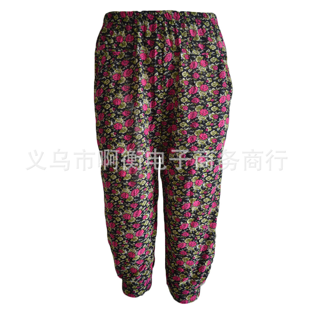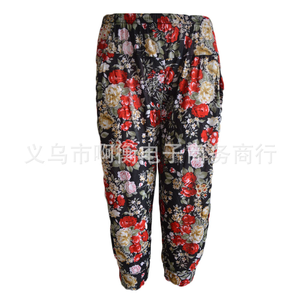 产品详情:厂家直供夏天冰丝彩色印花七彩灯笼裤
