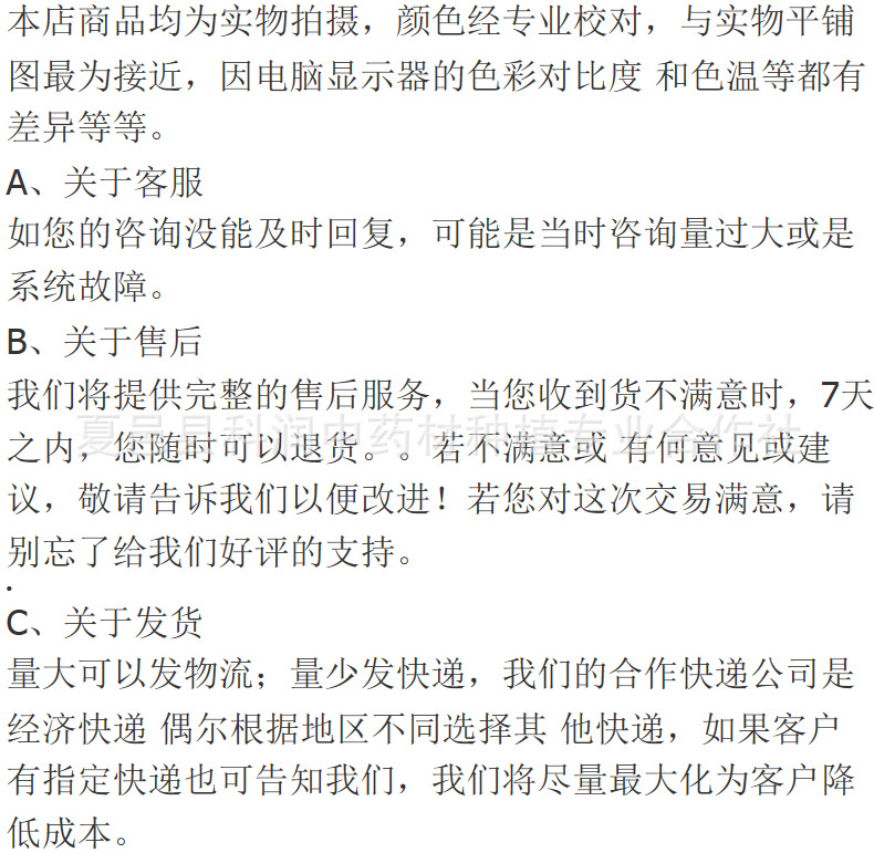 - 包装方式散装
