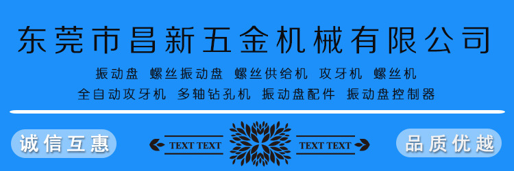 东莞市昌新五金机械有限公司是一家专门从事振动盘,振动盘,攻丝机和其他产品的生产和加工的公司。它兼具完整而科学的