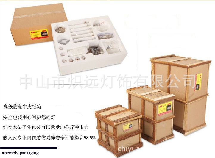 2.制造优势-高标准和标准的操作要求,以及由熟练工人在水晶灯组装方面超过5年的经验,以“审美,实用性,安装简便性和环境保护”为全球质量价值观的指南的生产管理,让我们的产品体现专业品质和技能的精巧之处。根据公司的运营规格,技术工人的人数与每个螺钉一样小。丝丝相扣体现了公司对消费者的责任和关怀。