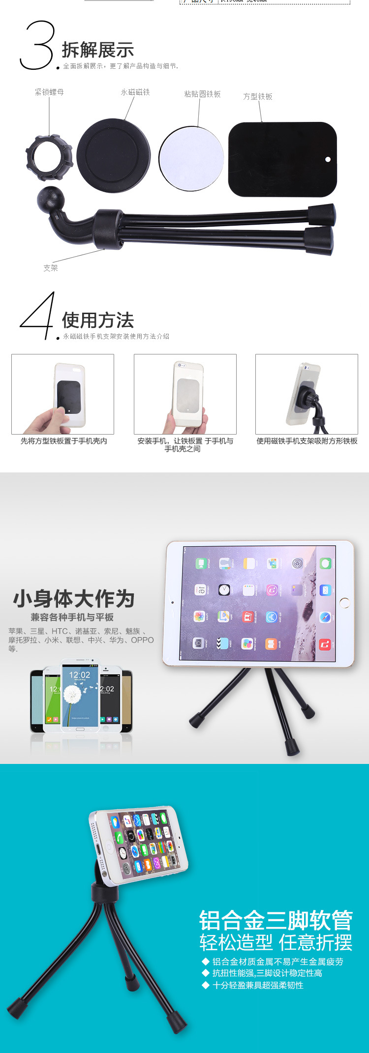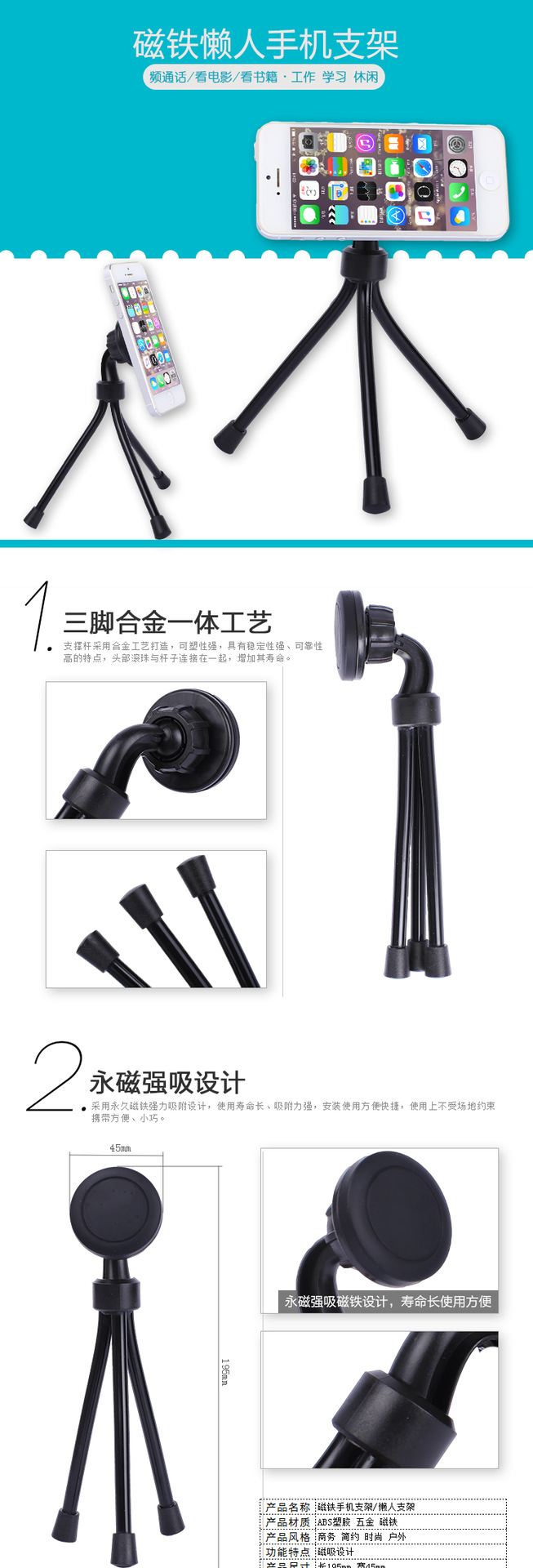 产品详情:产品称呼:磁铁懒人三脚架手机座