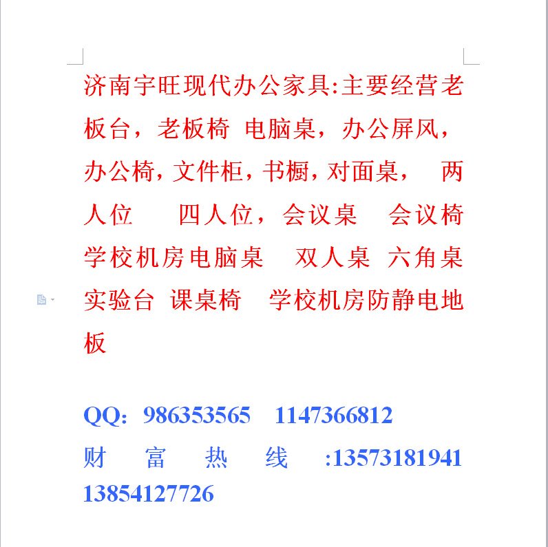 产品详情:济南市宇旺现代办公办公家具厂是一家专业生产和加工组合书架,高,中,低档电脑桌,机柜,鞋柜,衣橱,办公椅和其他产品的公司。它持有完整,科学的质量管理体系。济南市宇旺现代办公家具厂的诚信,实力和产品质量获取了业界的认可。欢迎各界朋友光临,指导和洽谈业务。