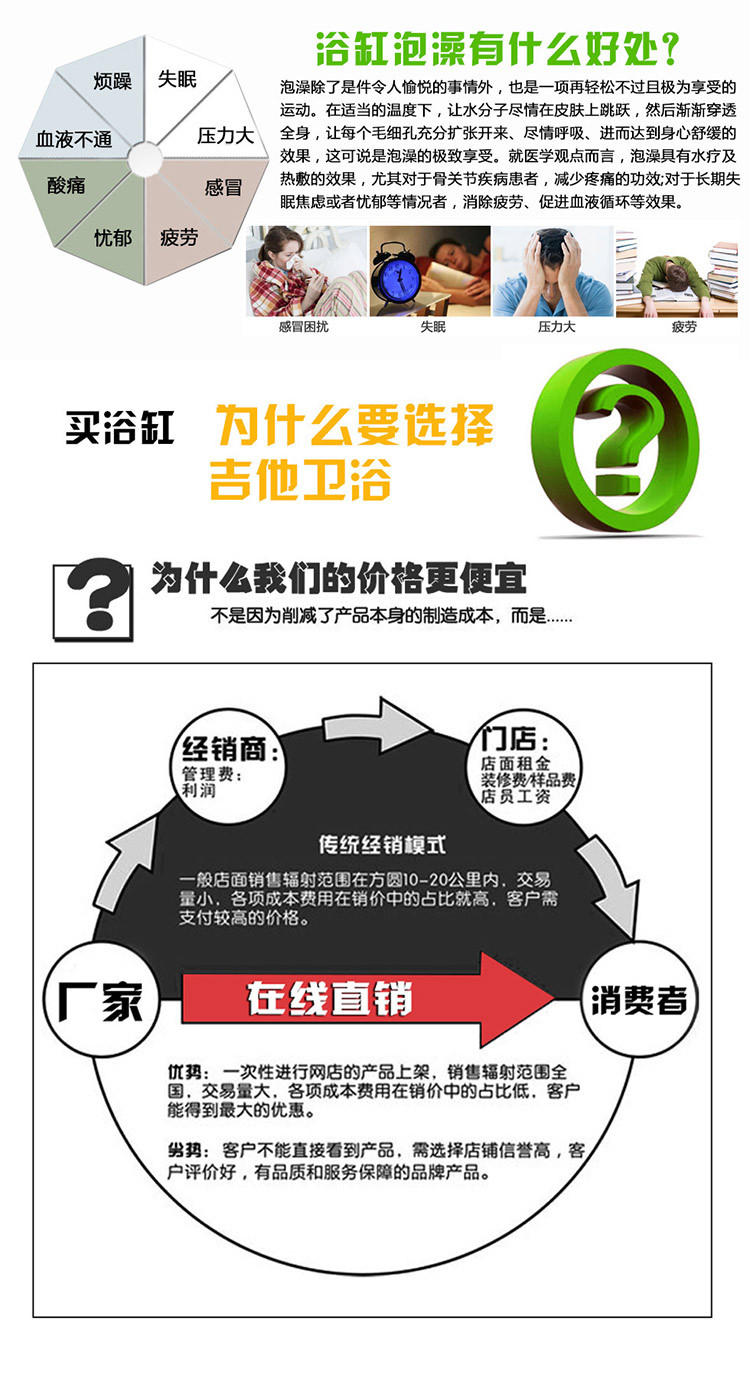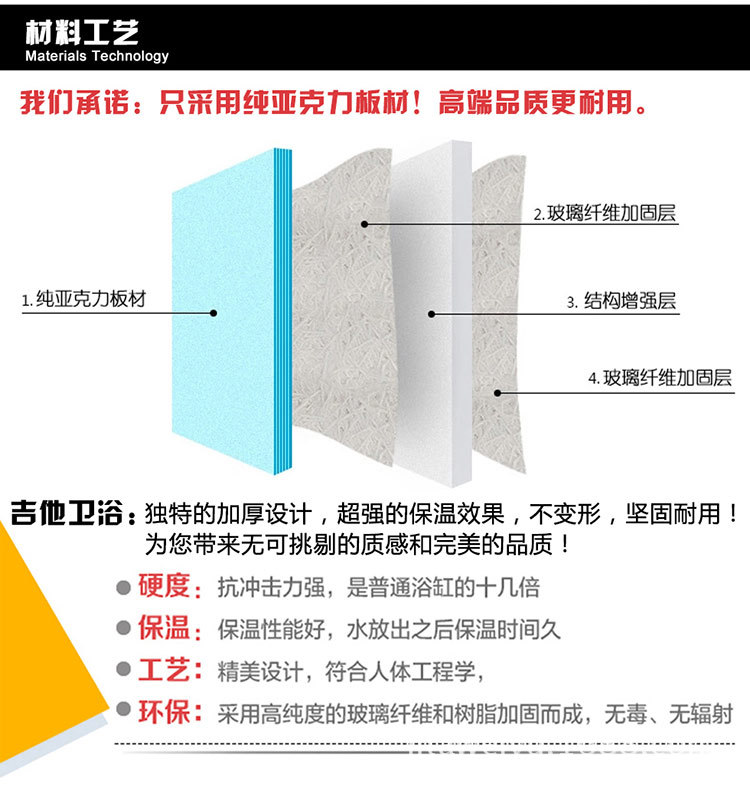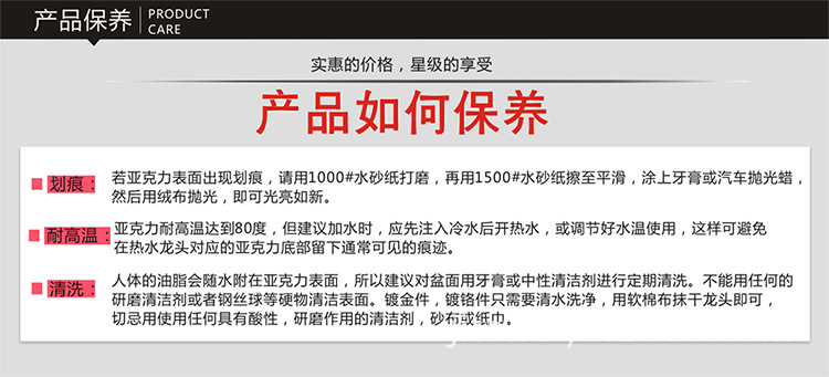 坐便器是继陶瓷之后最好的洁具新材料。与传统陶瓷材料相比之下,丙烯酸具有无与伦比的高亮度,它还具有以下优点:坚韧好,不易折断;只要您使用蘸有牙膏的软泡沫擦拭洁具,即可修复性强;质地柔软,冬天并未冰冷的感觉到;色调鲜艳,可以满足个人对不同口味的追求。由丙烯酸制成的盆,浴缸和亚克力不仅造型精良,结实,而且环保。辐射几乎与人体骨骼的辐射相同。压克力洁具最早出现在美国,目前占整个国际市场的70%以上。由于丙烯酸生产的艰难和高成本,市场上有许多低质量和便宜的替代品。这些替代品也叫作“丙烯酸”,但它们其实是普通的有机板或ABS复合板(也叫作夹心板)。普通有机板是用普通有机玻璃破裂材料和颜料铸造而成的,表面硬度低,不易褪色,用细砂磨砂后抛光功效差。复合板的表面只有很薄的丙烯酸层,中间是ABSplastic。在使用过程中,由于热胀冷缩的影响,很容易分层。从片材部分的轻微色差和抛光功效可以确定真假丙烯酸。