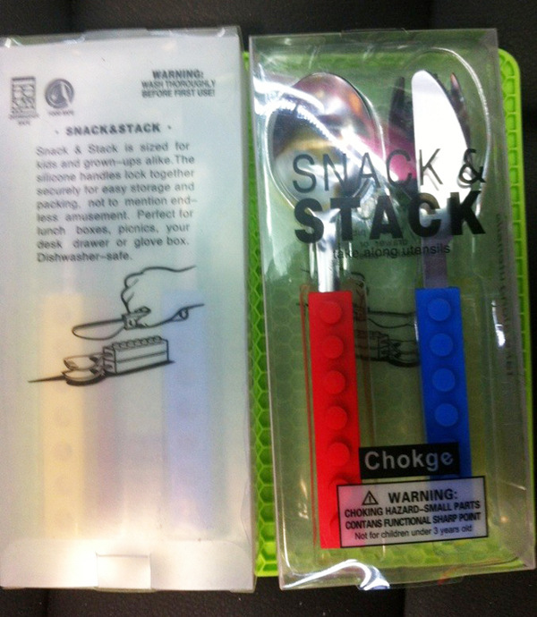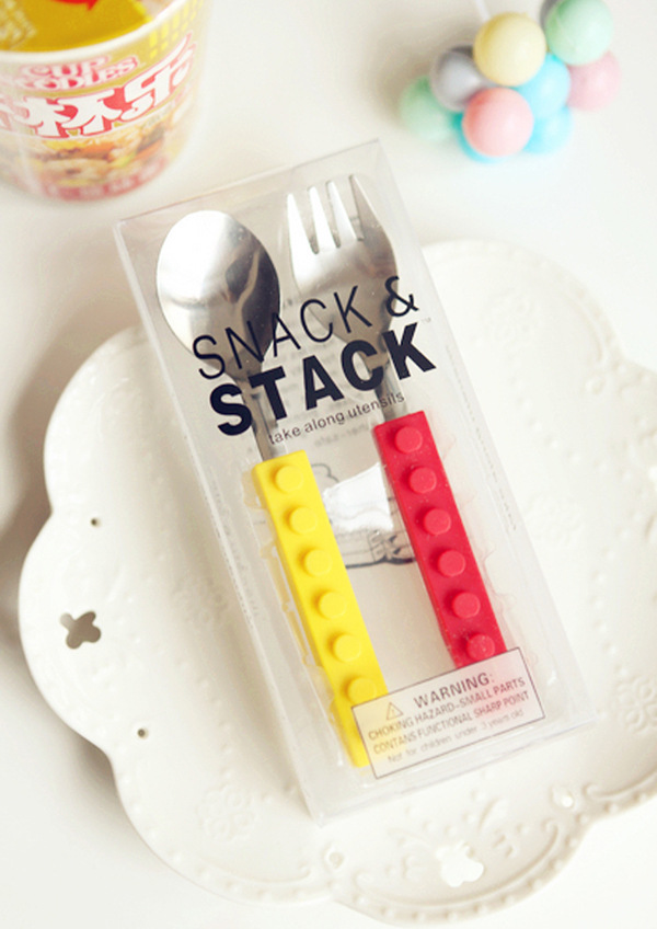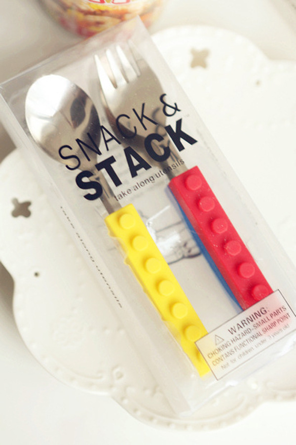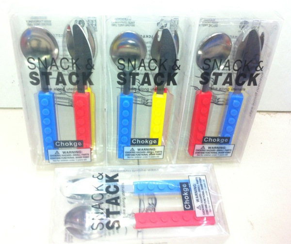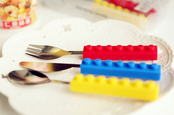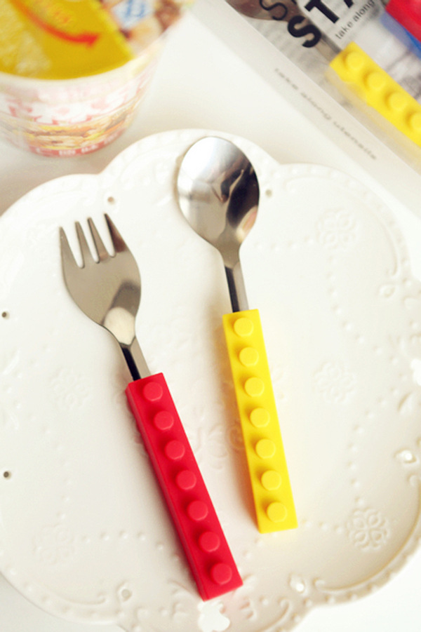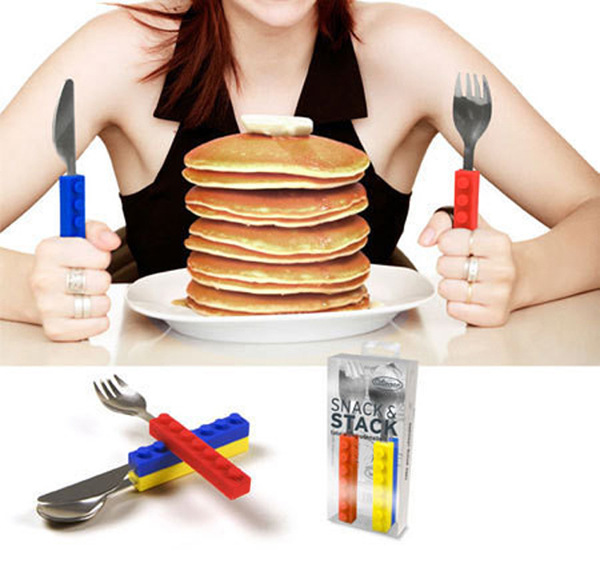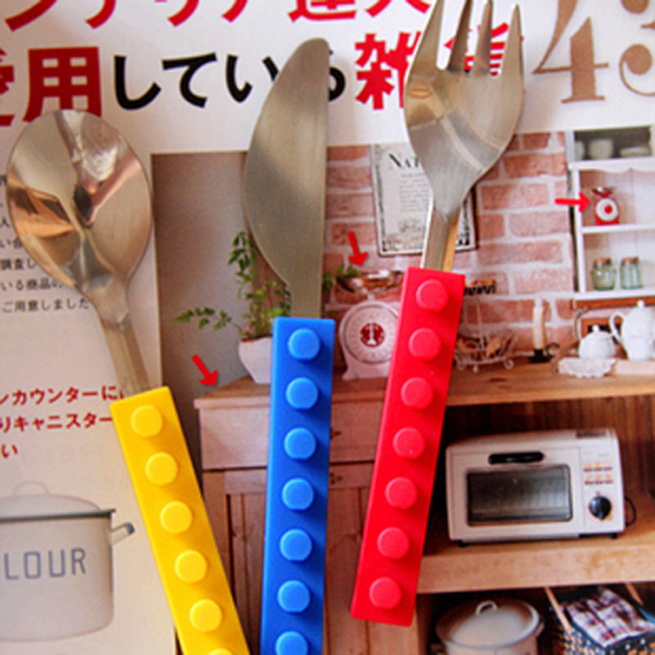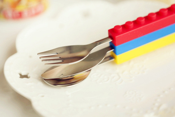 产品详情:积木孩童餐具不锈钢硅胶材料积木刀叉西餐刀叉套外贸热卖