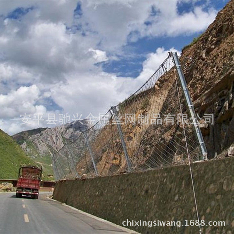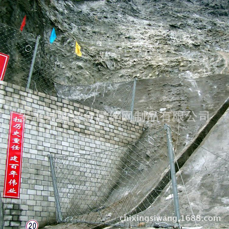 主动防护主动防护系统是多种钢丝绳网,主要是柔性网遮盖并裹在保护斜坡所需的斜坡或岩石上,以限制斜坡上的岩石和土壤的风化,剥落或破坏,以及危岩坍塌(加固),或支配落石在一定范围内移动(围栏功能)。