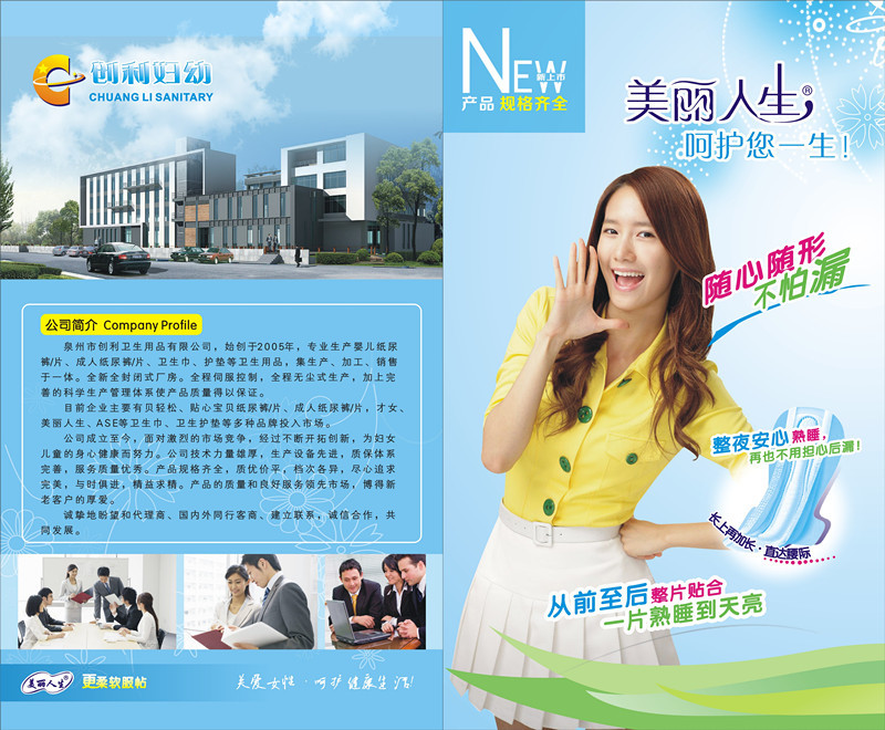 我们公司专业生产卫生巾,护垫,婴孩尿布/片,成人尿布/片,旗下品牌包括beautifullife,有才华的妇女,anqi,girls,baokaixin,caringbaby和贝轻松,各种规格和超级规格有着成本效用的组合该装置适当当前的市场需要,现在我们正在追寻代理商加入该国。