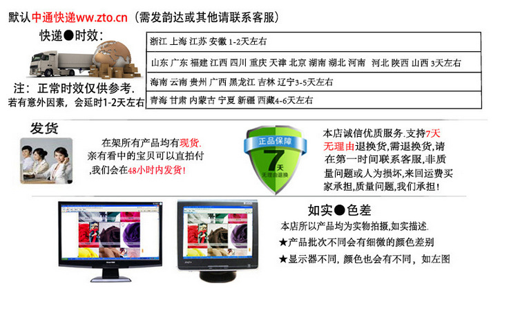 ◆运费取决系统设置。下订单后,如果对运费有任何疑问,请联系客户服务以进行更改。商店默认为中通,中通快递不可用,请联系客户服务以得到指导;