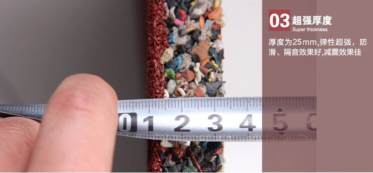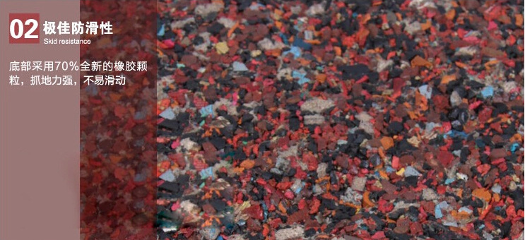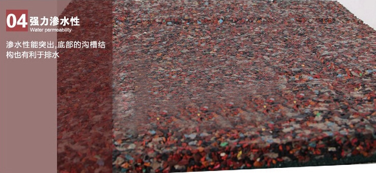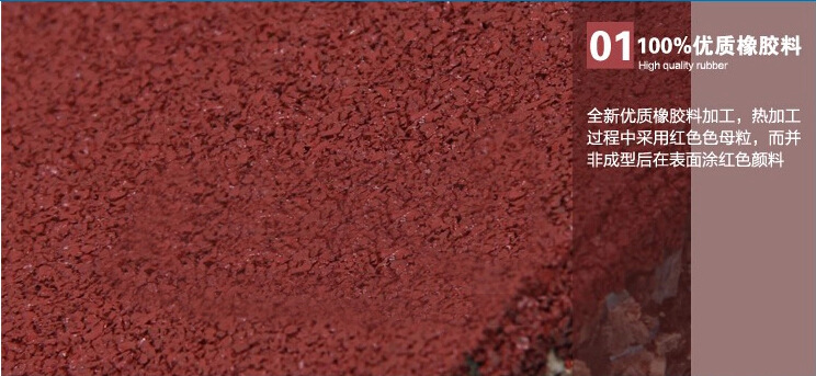 产品详情:1.高弹性;2.防滑;3.耐磨性;4.减震;5.吸音,隔音;6.保暖;7.防潮防水(水渗透性好);8.质地柔软,走动舒适;9.耐高温(正常使用-40℃----100℃);10.绿色环保(无毒,无污染,无辐射);11.耐火(自熄);12.防霉菌,无微生物;13.良好的耐候性(适当在各种环境条件下使用);14.耐冲击性;15.色调丰沛,和谐漂亮;16.易于铺设,可以随意组合;17.随意搬迁;18.不容易冲破;19.易于洁净,保护良好;20,无反射,无变形;21,防静电;22,抗压和抗冲击性;23,耐老化(具良好的抗氧化性,可满足长期户外使用);24,普遍使用场所(适用于室内或室外的任何场所)。