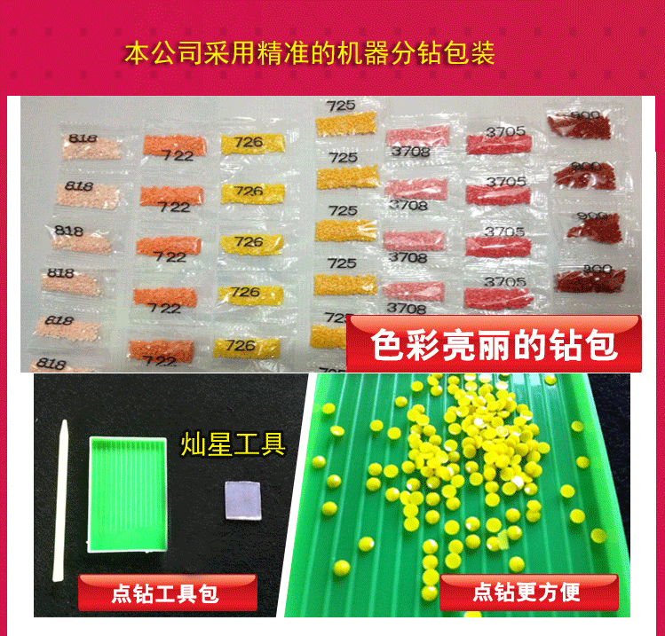 高清和可靠打印钻石画底图,明晰的色块记号,优质双面胶带