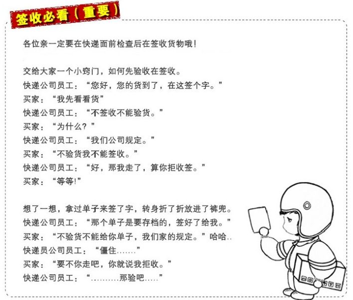 2.我们希望每个人都能提出看法,请告知我们我们不令人满意的地方,我们将给与纠正。我们希望在每个人的监督下得到进步。但是我们也要求合作同伴了解我们,并能够容忍我们有时候有小疑问。偶尔,只有用放大镜才能见到小疑问,或者您无法根据要求开展操作。请不用顾虑太多。您可以互相明白,以实现双赢。作为卖家,您当然不希望您的客户介意太多,对吗?