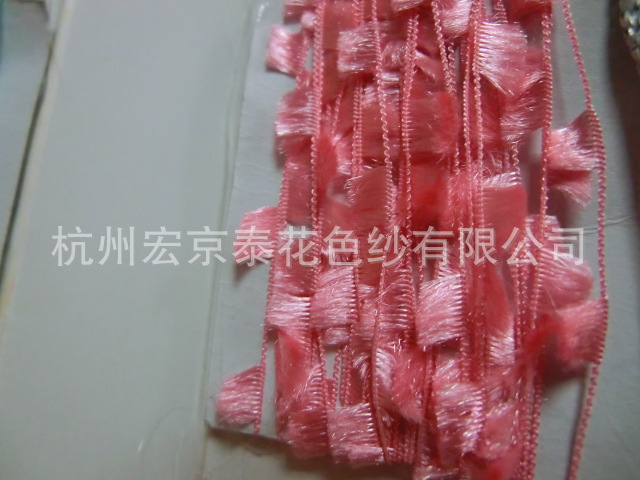 产品详情:杭州宏京泰花色纱有限公司是一家纱线公司,专门生产中高端花式纱线。该公司专业生产圈圈纱,大肚纱,结子纱,胶带纱,瓦楞tt纱,亮片纱,编织纱,羽毛纱,膨体纱,包缠纱,曲珠纱,冰岛毛,红旗纱等特种纱线。工厂地址坐落杭州市萧山区新街镇新塘头村,毗连中国轻纺织材质市场,工厂面积为10,000平方米。有20套二罗拉,三罗拉,五罗拉花捻机,100套钩针机和100套穿线机。月平均产量为450吨。工厂技术力量充裕,每道工序均由经验丰富的专业技术主干严苛指导和检查。“讲求质量和交货期,尽力使客户令人满意。”服务客户始终是我们企业的主旨。我们的客户群主要分成两类:国内品牌客户和出口客户。到目前为止,它早已与国内许多针织面料工厂确立了长期亲善的合作关系。欢迎您的来电!