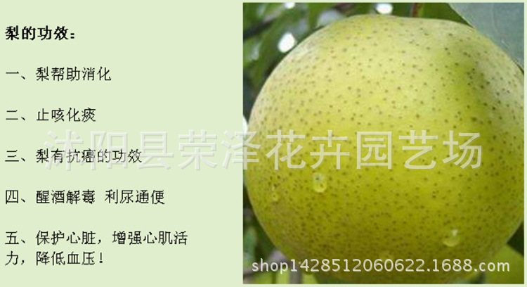 生态习惯:比苹果更能适于外界环境,耐寒,耐旱,耐涝,耐盐,耐碱,在冬季低于气温大于-25度的地区,大多数品种都能安全越冬,根系是喜光喜温兴旺,提议在土壤深,排水良好的平缓坡地上种植,尤为是沙壤土山区,根系兴盛,垂直根深可达2-3m以上,并且水准根部普遍分布,约为树冠宽度的两倍。干燥力强,分层显著。果实早,结果期长。有些品种在3-4年内开始开花结果,可以保持50年以上的结实期,大多数品种先开花然后开花,一些品种同时开花或先开花然后开花。花粉受精后,果实开始发育,器皿发育为果肉,子房发育为基本,胚珠发育为种子。在合适的条件下,雪花梨根系可以每年生长而并未休眠。