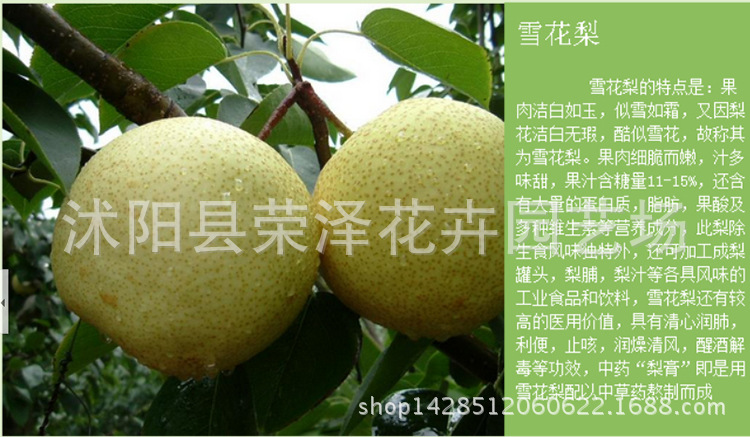 产品详情:雪花梨果皮绿色,有光泽的果皮,蜡质。在市场上常见的梨中,它最大,每只重约350-400克。它的肉酥脆,多汁,甜,最知名的产品是河北赵县。雪花梨具很高的医学价值,兼具清心养肺,改善腹泻,缓和咳嗽和保湿干燥,清酒和排毒的功用。