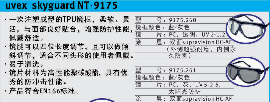 3.所有防护眼镜均符合EN166基准的最高光学等级;