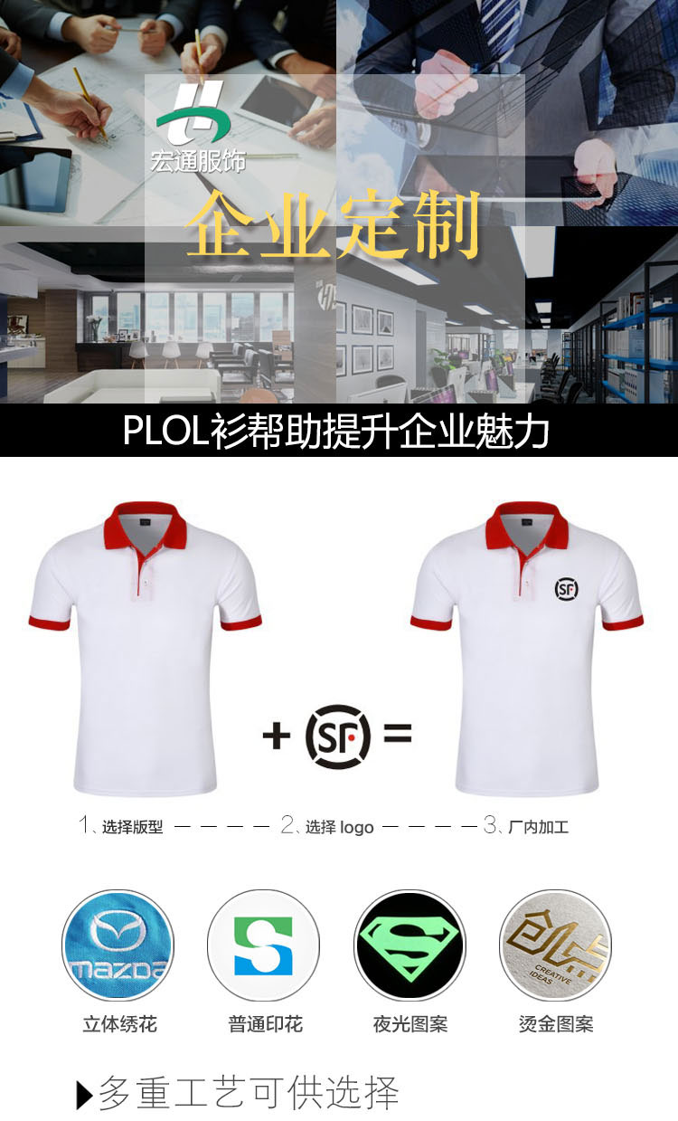 产品详情:宏通服装是一家高品质,时尚,结实的工作服,工作服,polo衬衣等的专业制造商,并提供徽标刺绣服务。时尚的式样和平稳的货源,为客户提供便利的购物方法和周到的服务,低于订购量为10套,在15天内交货,欢迎客户前来购得。