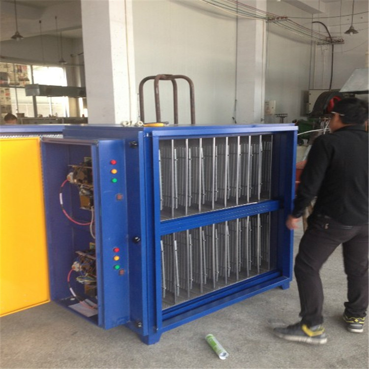 由于厨房中烹饪油烟的成分繁杂,除了一氧化碳,二氧化碳和颗粒外,在燃烧过程中还会排放出多种有害气体。另外,烹饪油烟中的粒度分布较宽,并且构成变化很大。因此,难以提纯,并且难以全然使用常规技术。去污:该产品有着机器净化和静电净化的双重功用,将含烟气经风扇吸入管道后,首先进入主要设备-净化精馏室,使用重力惯性净化技术,特别是机房构造逐步将大颗粒污染物物理分离并抵消处置,分离出的大油滴注入油箱并在自身重力的作用下排出,余下的小颗粒污染物进入二次设备-高压静电场。静电场有两个阶段。第一级是离子发生器。强电场使粒子荷电变为带电粒子。这些带电粒子抵达第二阶段。集尘器立刻被集尘电极吸附并部分碳化,同时高压静电场有效性降解有害成分,起到消毒除臭的效用,最终将洁净空气通过滤网排到室外。