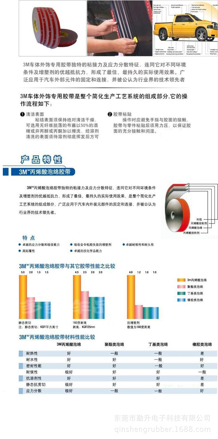 3m主要用于汽车装饰件,前装饰件,后装饰件,门槛条,防撞角条,后护板,不锈钢油箱盖,踏板,门把手,轮弧,隔板,板式刹车灯,用于粘贴和固定汽车和摩托车标牌,金属板,汽车零部件,安全玻璃等