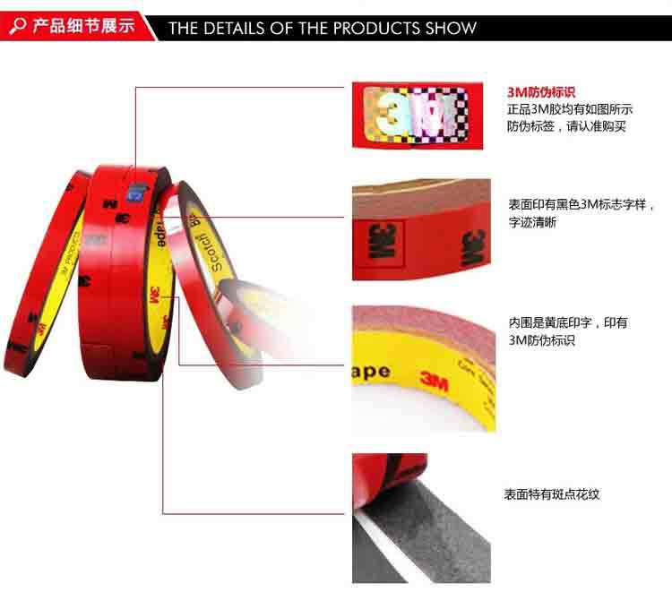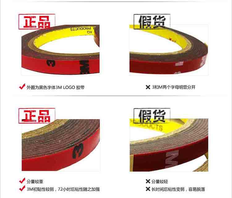 3M胶带是许多工业级双面泡沫胶带中最卓越的产品。它使用耐磨的底材,适用于多个表面的粘合剂涂层和与众不同的颜料上色技术,可以满足所有光滑零部件和所有汽车标识,汽车门窗组合和密封要求的要求,并适用于非结构性固定轻盈的小材料。