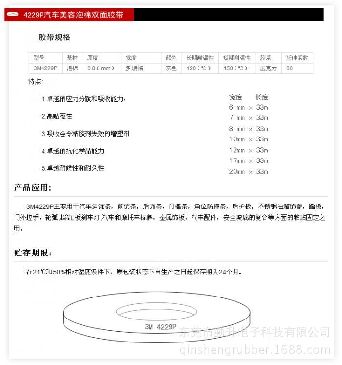4218(材料)丙烯酸厚度(1.2)特性和粘合范围:防水,防震,耐热,附着力强,耐候性优,主要用于固定原始汽车零部件