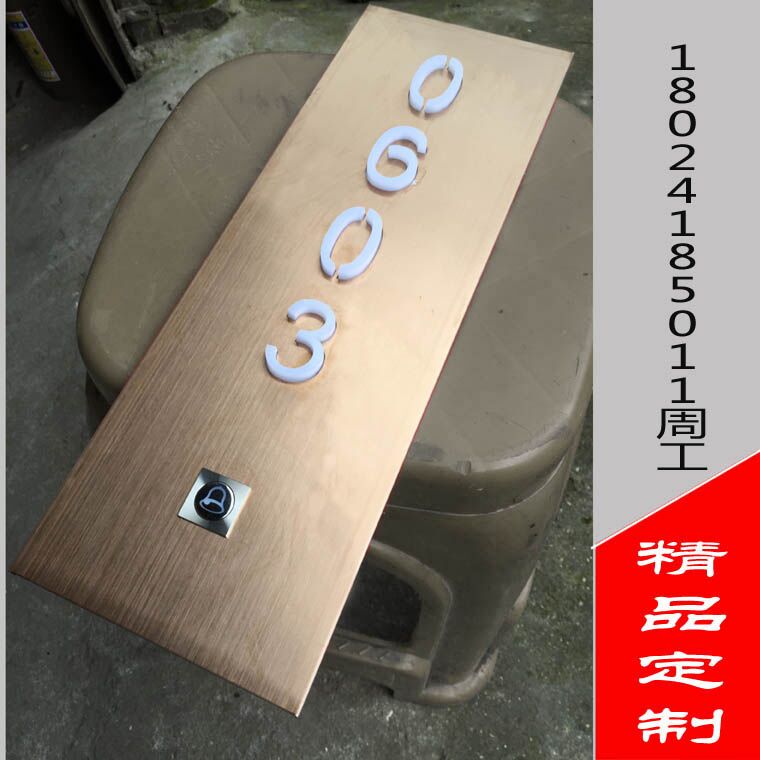 真空电镀的不锈钢门牌,效用显著优于喷漆标记。可定制酒店及酒店娱乐场所的ktv各种不锈钢电镀钛金room的门牌号识别号码,集成门铃,免打扰灯,洁净灯。各种种类的定制:标牌,指引标牌,金属蚀刻,地板标牌,屋子号牌,楼盘标牌,社区标牌,花园标牌,景观,图纸和样品。