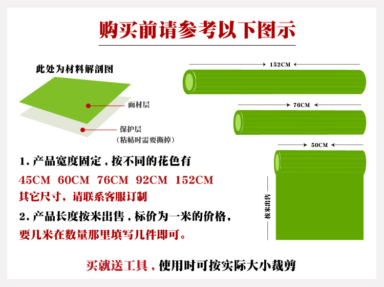购买时,请先测量尺寸,并考虑尺寸尺寸的10%左右,以免在粘贴过程中毁损或紧缺。