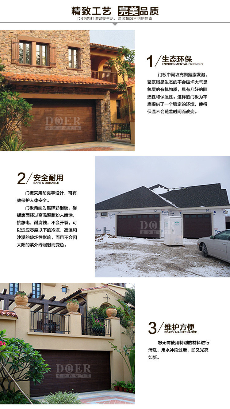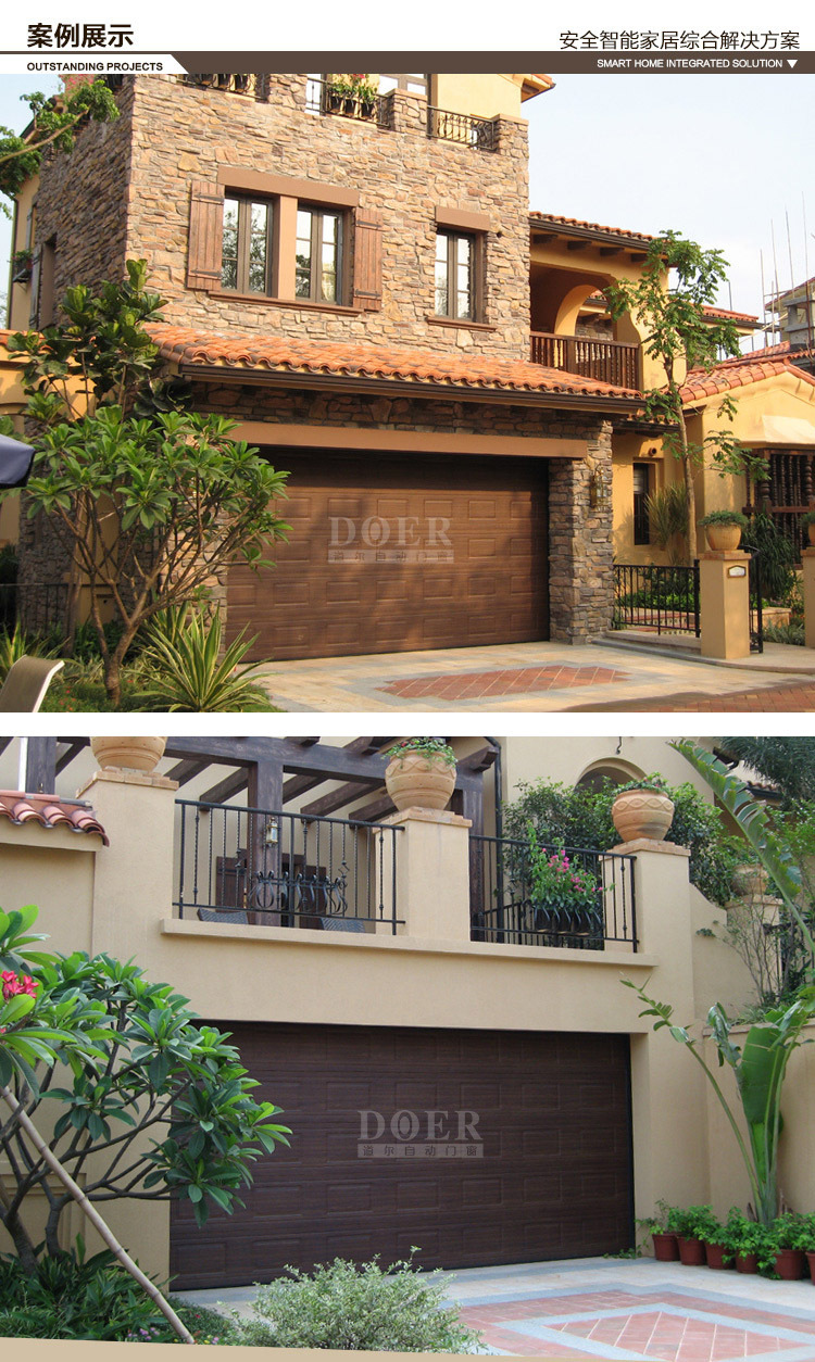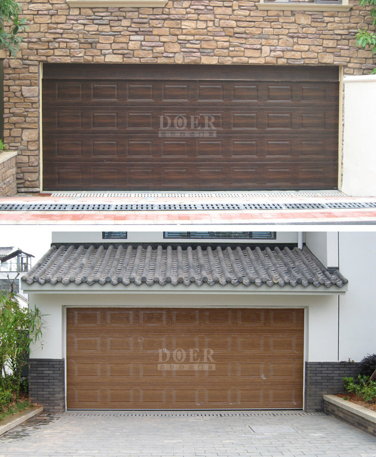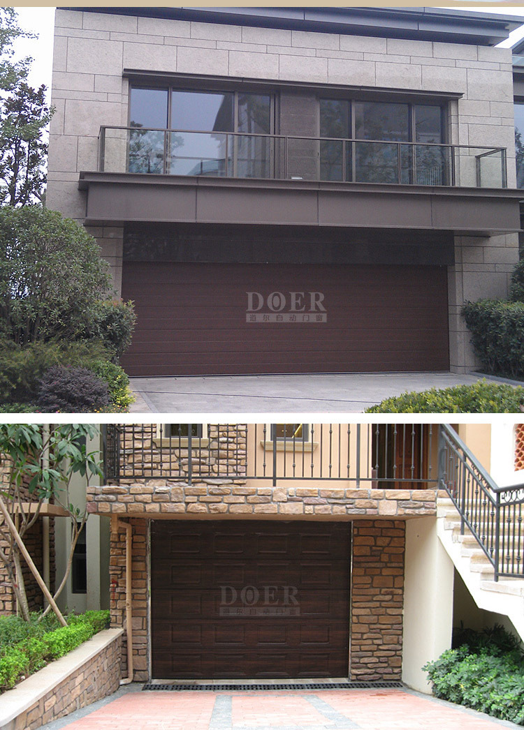 产品详情:车库门制造商工程供应商欧洲木纹转移翻板车库门电动车库门