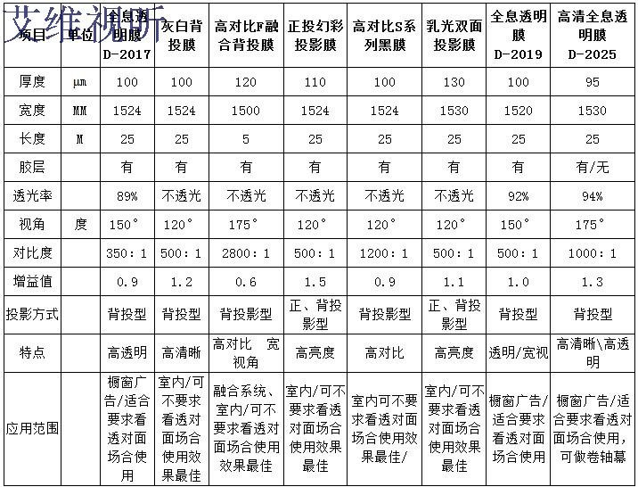 投影胶卷参数