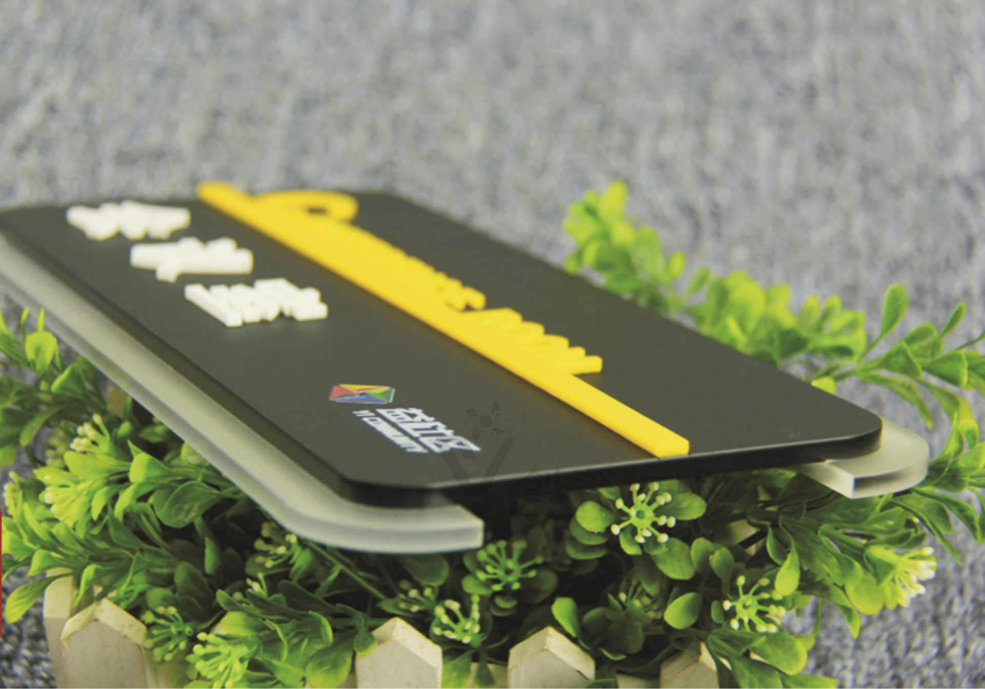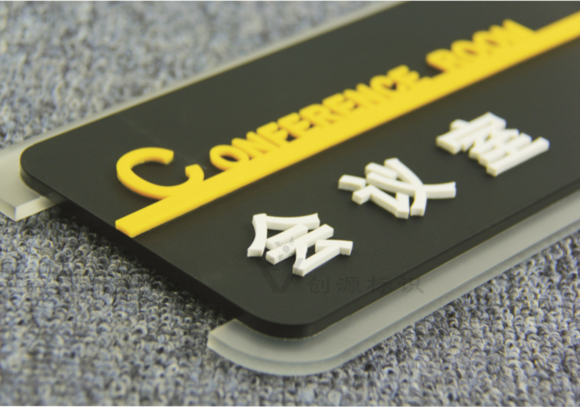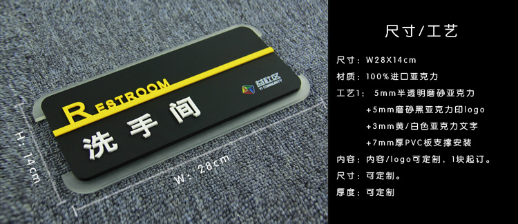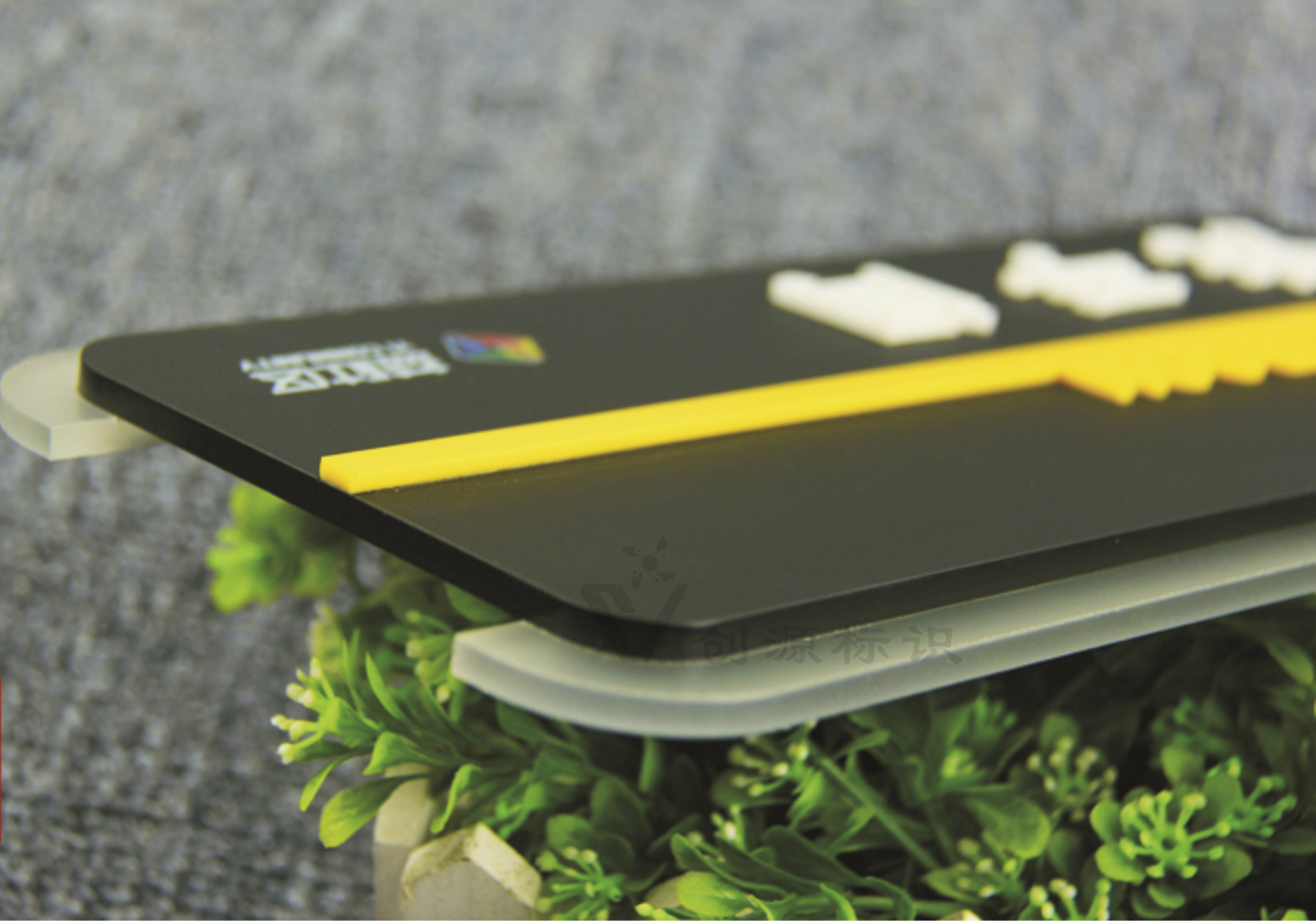 5mm半透明磨砂亚克力印logo +5mm磨砂黑色亚克力板+ 3mm白色/黄色亚克力文字+靠背7mm厚pvc板