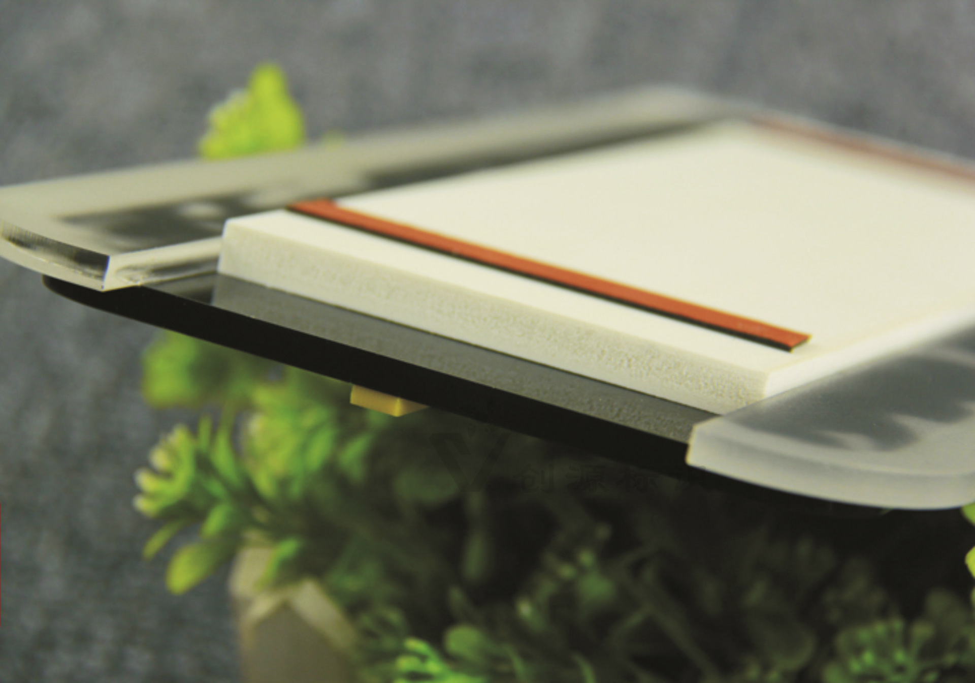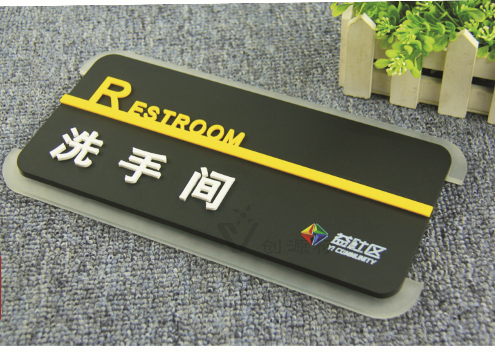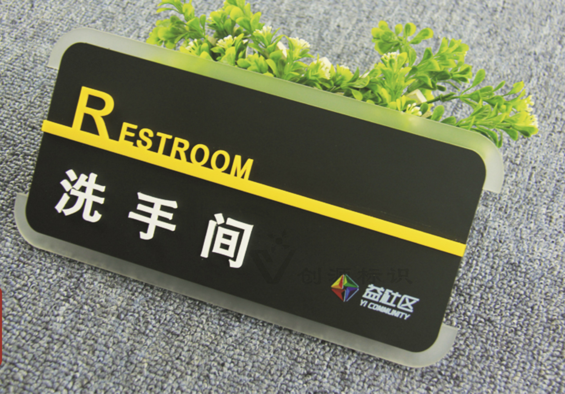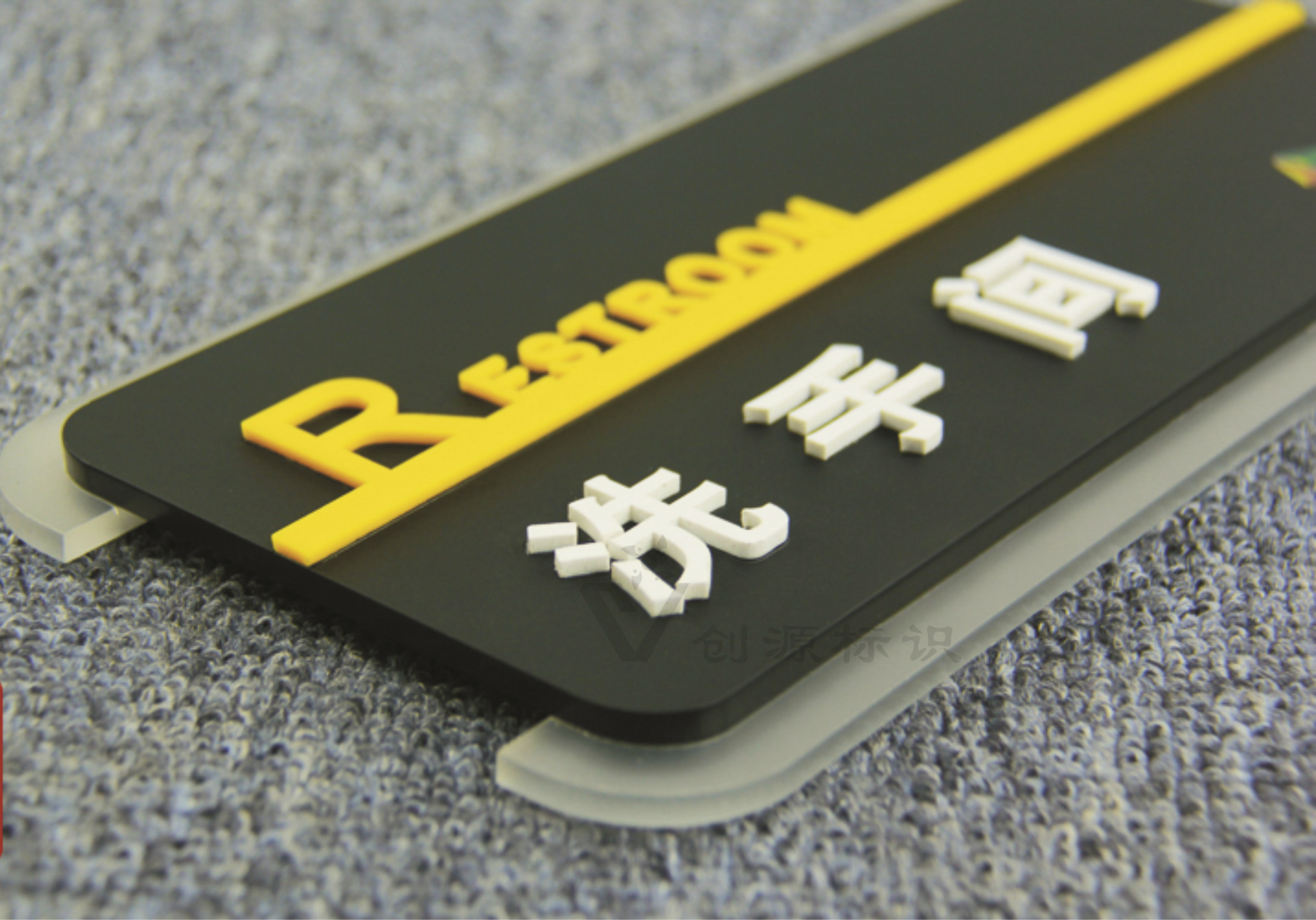 5mm半透明磨砂亚克力印logo +5mm磨砂黑色亚克力板+ 3mm白色/黄色亚克力文字+靠背7mm厚pvc板